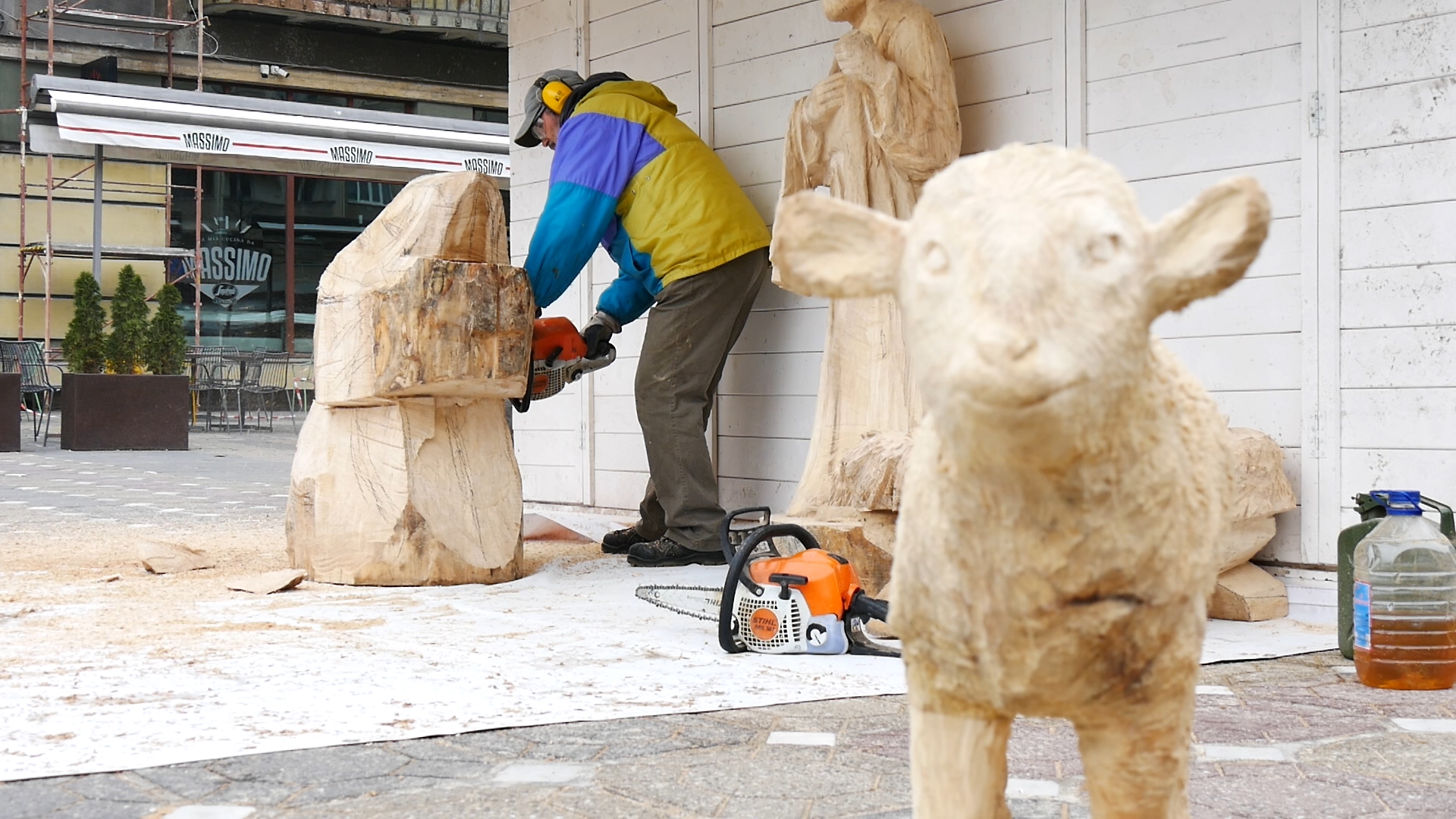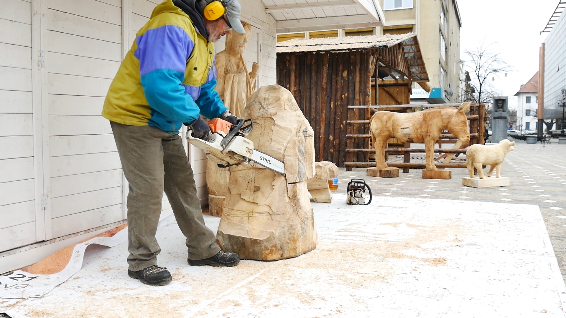 Ieslea unde s-a născut Iisus va fi anul acesta reprezentată într-un mod special. Figurinele sunt sculptate în lemn, cu drujba, de un meșter priceput. George Bostănică, cunoscut și sub numele de „sculptorul cu drujba”, este zilnic la muncă în centrul Timișoarei.