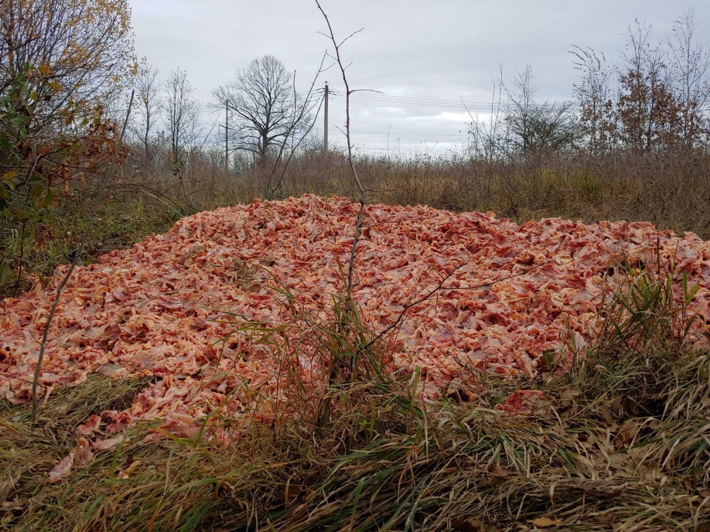 Imagini greu de digerat. Sute de kilograme de deșeuri animale, debarasate pe un câmp din vestul țării