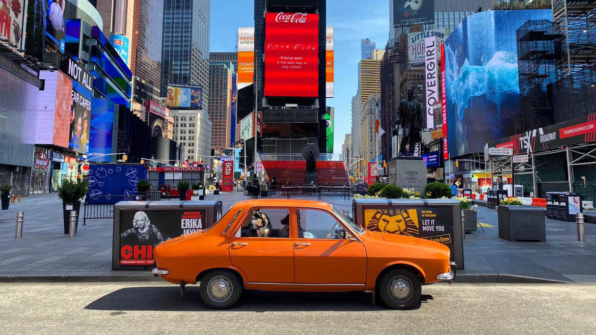 Eduard Palaghiţă, un român stabilit de 25 de ani în America şi mare pasionat de Dacii, a postat pe mai multe pagini de Facebook ce îi aparţin fotografii cu o Dacie 1300 în centrul New York-ului pustiit de pandemie. Imaginile au devenit rapid virale, strângând mii de like-uri şi share-uri.