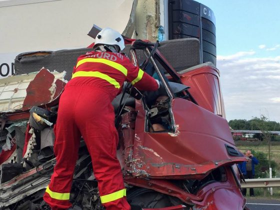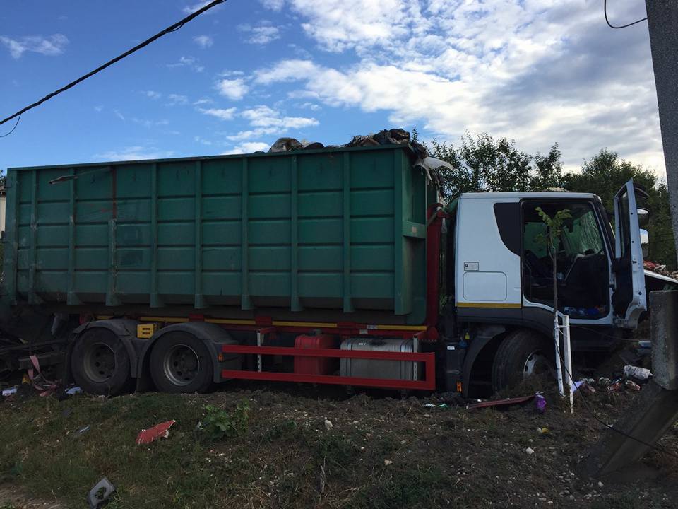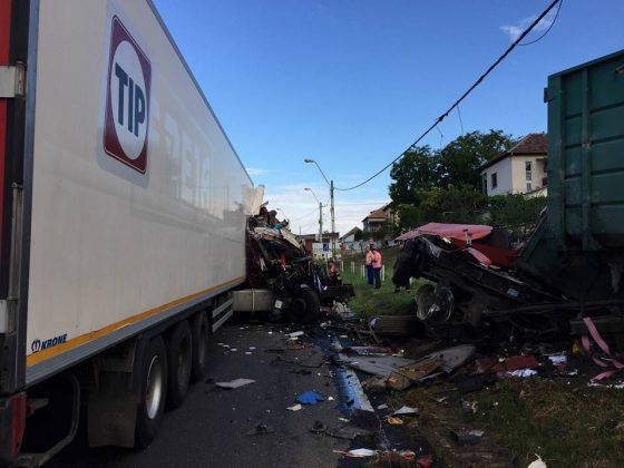 În accident au fost implicate 2 autotrenuri şi un autovehicul marca Renault Cangoo. Un autotren transporta deşeuri menajere, iar celălalt autotren transporta o remorcă frigorifică.