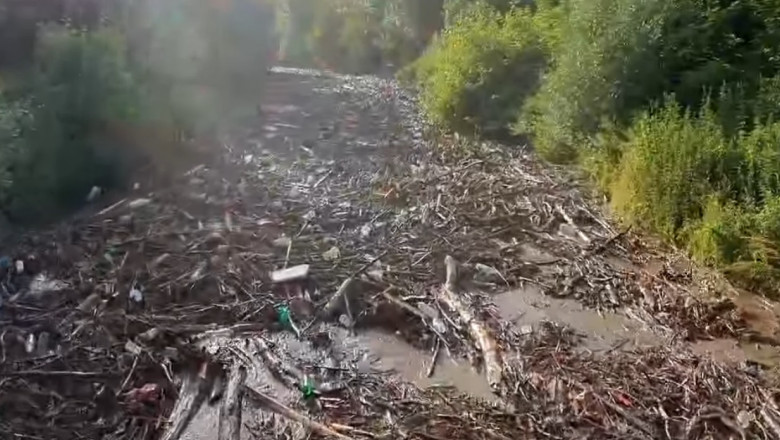 O viitură de numai un minut a adunat tone de gunoaie aruncate în albia râului Geoagiu din județul Alba. Într-un film postat pe Facebook se vede cum apa a adus din munți tone de PET-uri, plastic și crengi.
