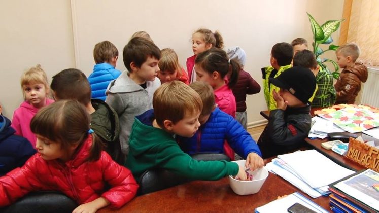 Copiii au fost serviţi cu bomboane, apoi au luat la cunoştiinţă cu ce se ocupă Primăria Dumbrăviţa vizitând birourile acesteia, însoţiţi fiind de viceprimarul comunei, Arpad Miklos.