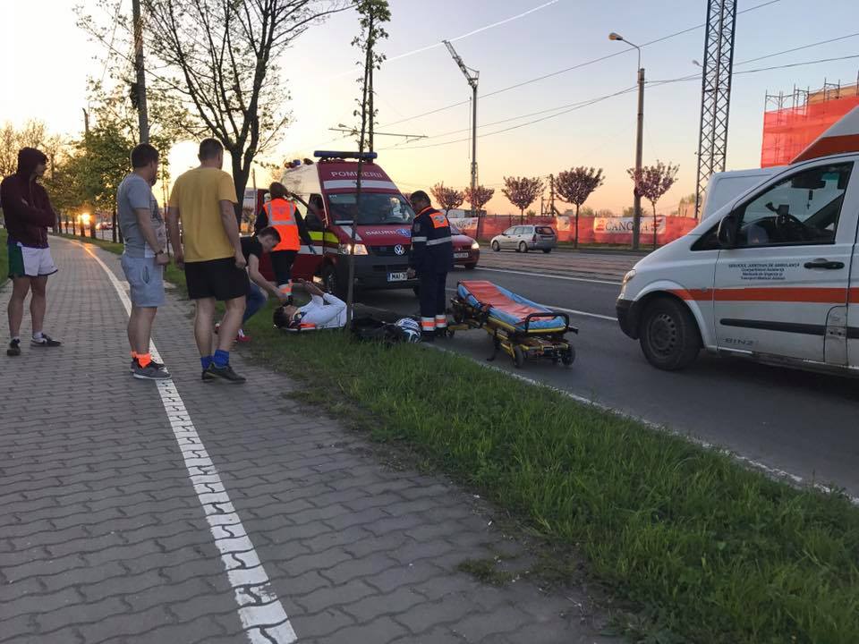 La faţa locului a sosit poliţia şi o ambulanţă care l-a transportat pe tânarul motociclist la spital.
