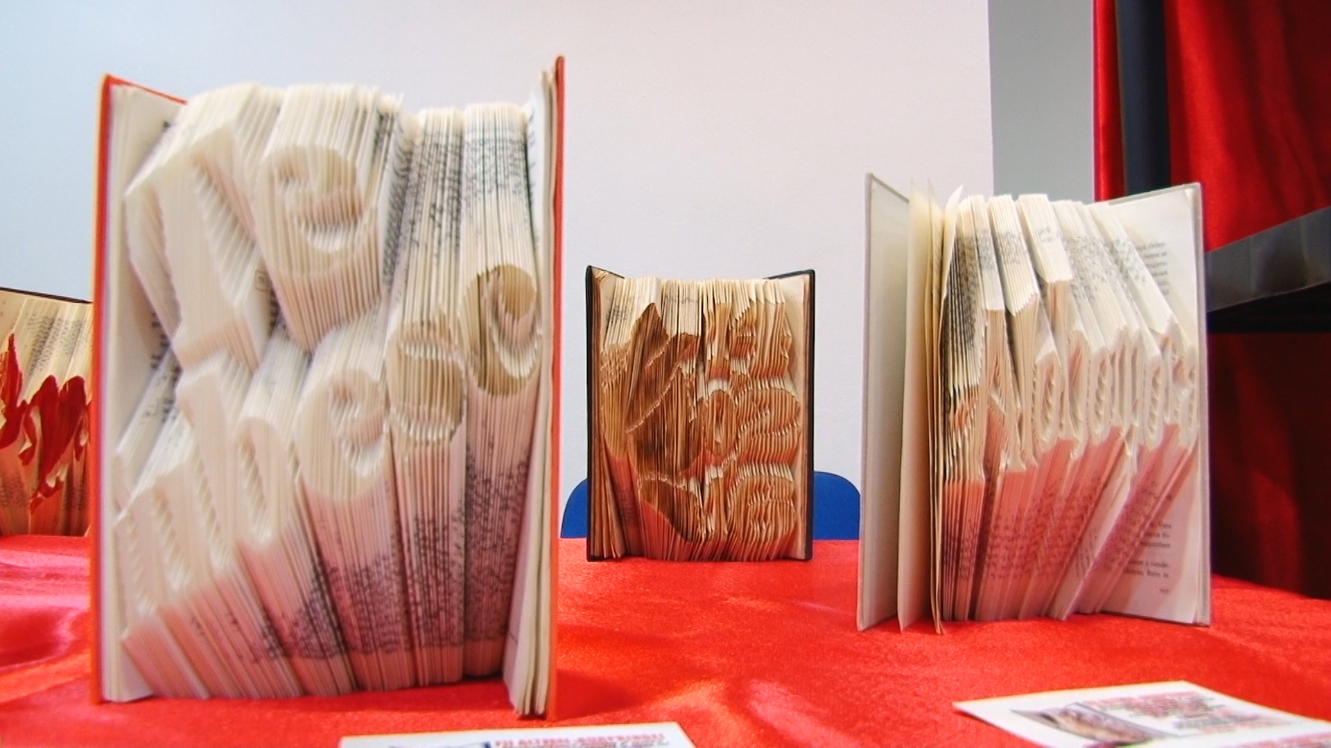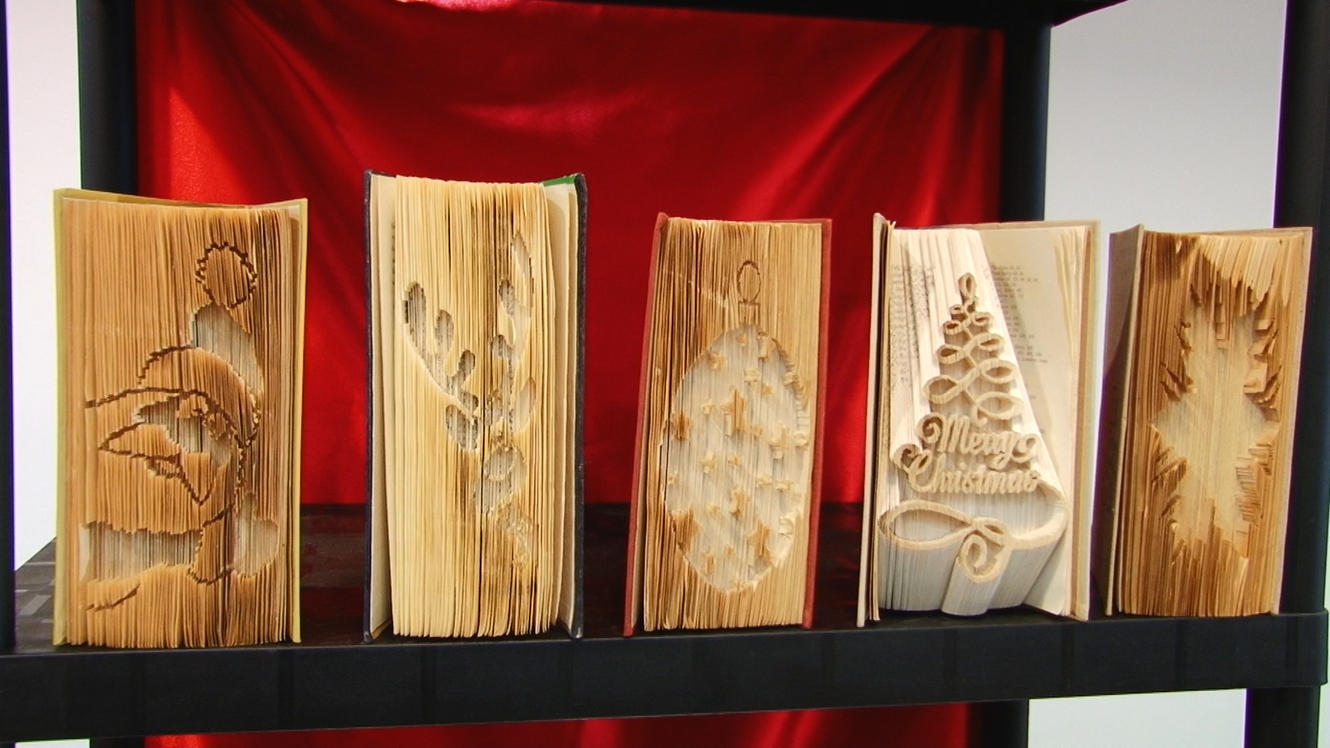 Anul acesta târgul aduce un cadou inedit pentru timișoreni, apărut nu de multă vreme pe piață. Oferta de carte decorativă și personalizată se face pe comandă. Aici clientul vine cu cartea dorită, iar meșterul o decupează după placul acestuia. Pentru realizarea imaginii din carte, procesul durează între 2 și 10 zile, în funcție de complexitatea modelului cerut. O carte modificată reprezintă aproximatic 3.000 de tăieturi artistice, care ilustrează modelul dorit. Cărțile simple costă aproximativ 200 de lei, iar cele complex ajung și la 400 de lei. Prețul însă este negociabil.
