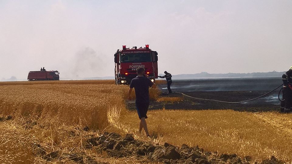 Ieri, 21.07.2017, pompierii din cadrul stației Deta au fost solicitați să intervină pentru lichidarea unui incendiu la un lan de grâu, în localitatea Petroman.