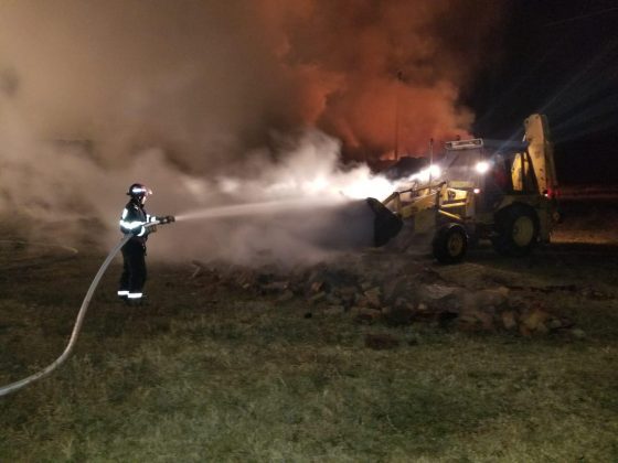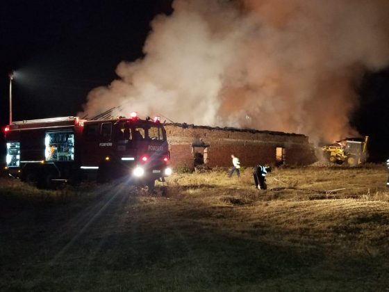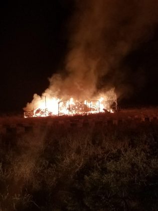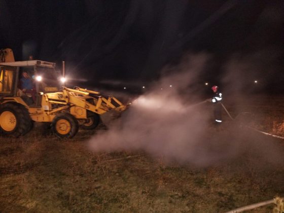 Noapte albă pentru pompierii din Ineu. Ambele detașamente au intervenit de urgență în toiul nopții pentru a lichida un incediu izbucnit la un fost CAP din localitatea Măderat. Au ars zeci de baloți.