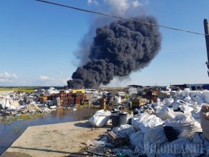 Un incendiu devastator a izbucnit, în cursul acestei seri, la un depozit de deşeuri plastice din localitatea Nojorid, judeţul Bihor. Flăcările au atins chiar şi 150 de metri înălţime şi au produs un fum extrem de dens şi înnecăcios, astfel că localnicii au fost avertizaţi să nu iasă din case.