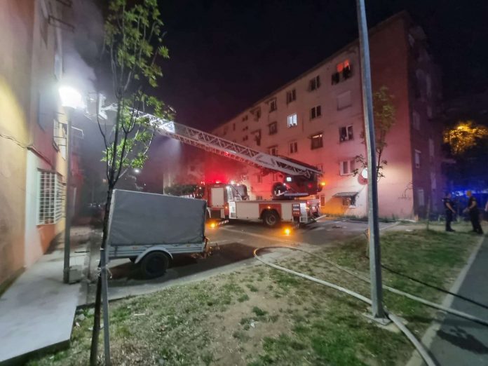Incendiul a pornit într-o garsonieră de la etajul II al unui bloc de pe strada Predeal, existând mari degajări de fum care au impus evacuarea locatarilor.