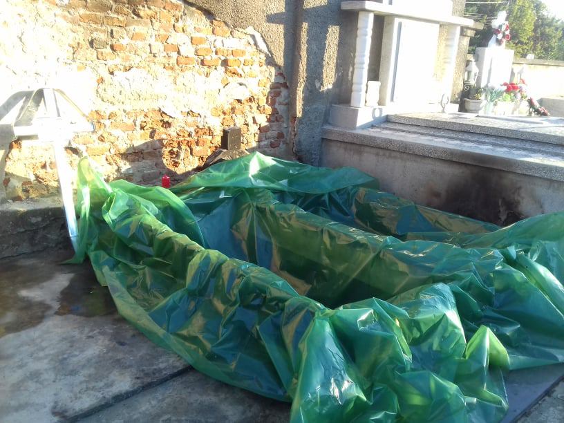 Zecile de coroane depuse pe criptă după înhumare au produs un foc atât de puternic încât s-a topit crucea și restul mormântului, realizat din granit.
