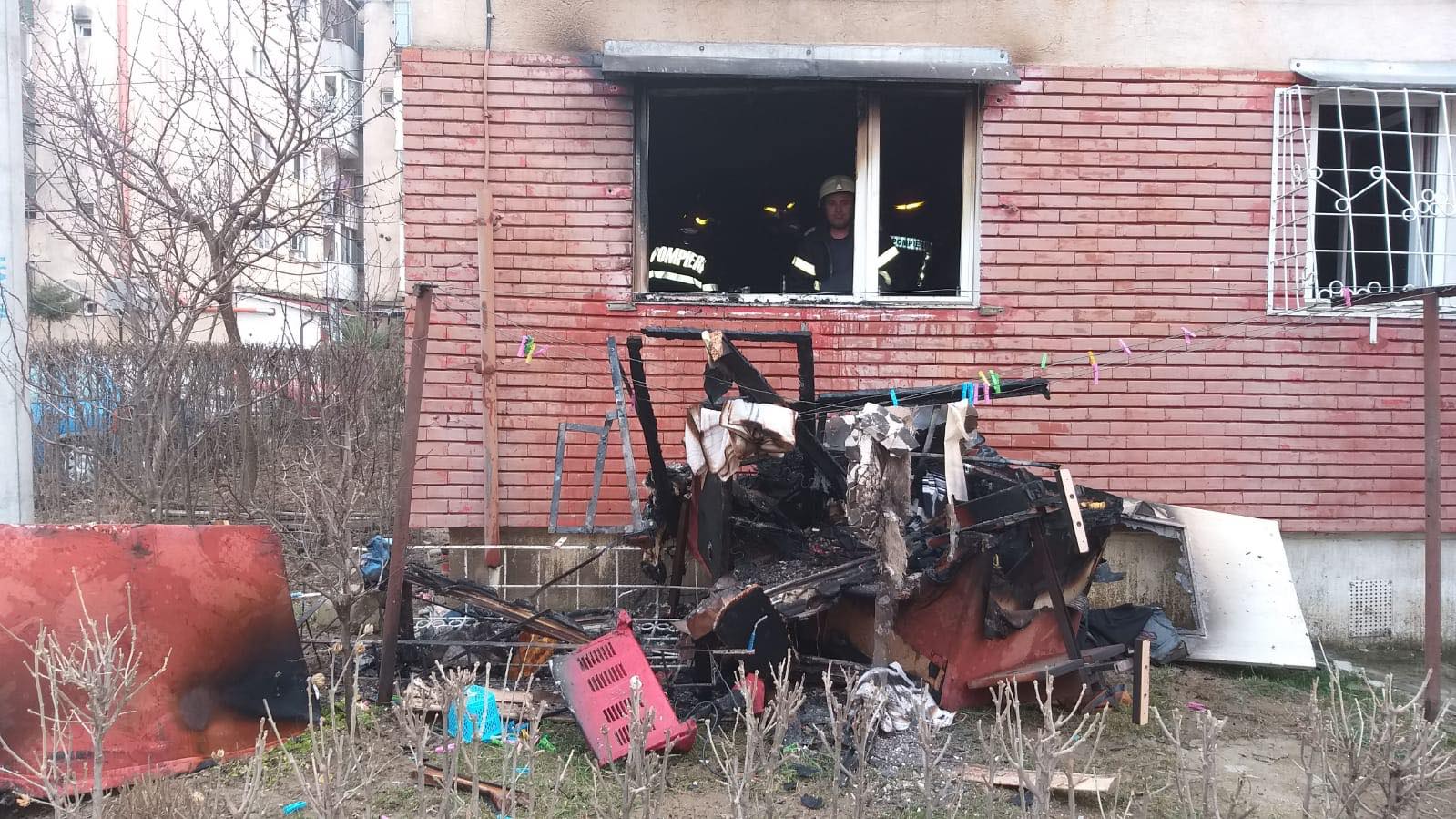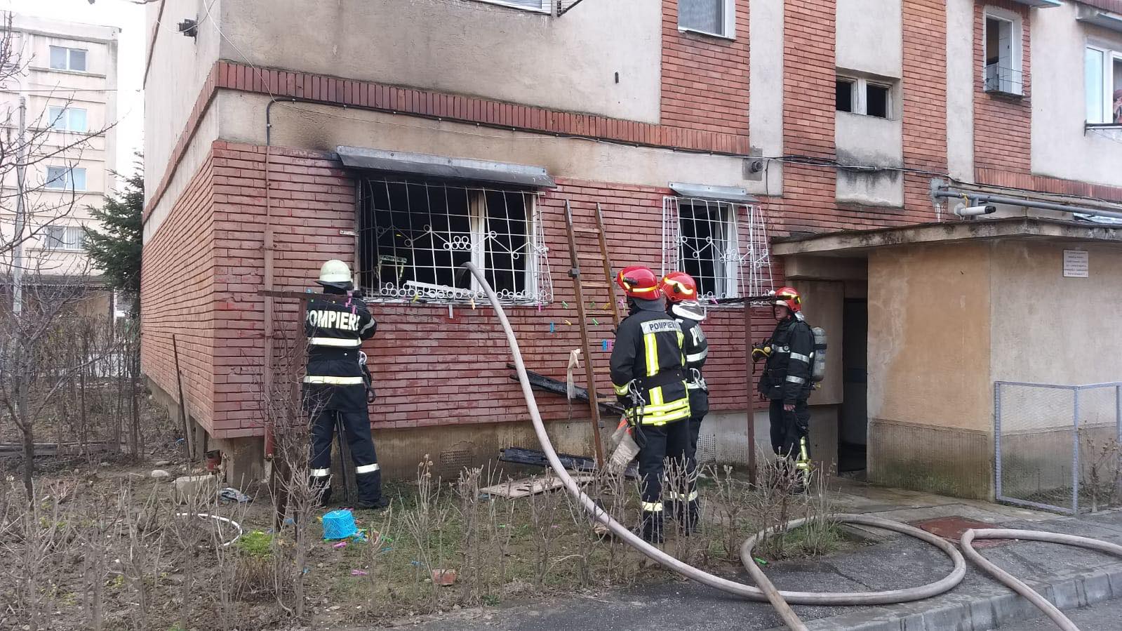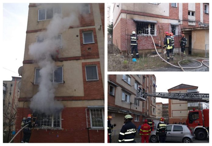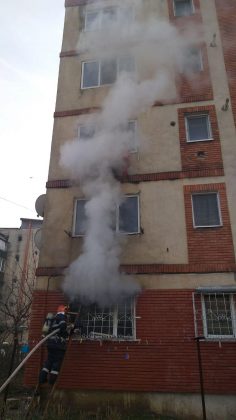 Un apartament a fost cuprins de flăcări și fumul gros a ajuns până la etajele superioare.