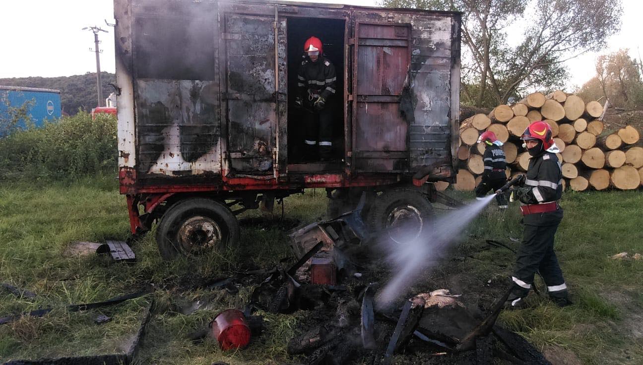 A ars, însă, complet, o rulotă, dar nimeni nu a fost rănit. Au intervenit pompierii din Reșița și voluntarii din Bocșa.