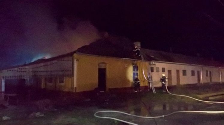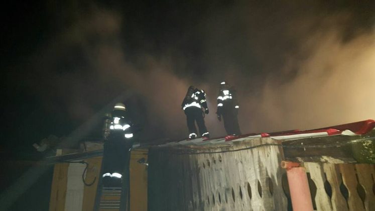 A ars în totalitate aproximativ 150 mp de acoperiș şi au fost deteriorate produsele destinate vânzării din 5 încăperi.