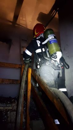 21 de pompieri au fost mobilizați la locul incendiului, intervenind cu patru autospeciale de stingere cu apă și spumă.