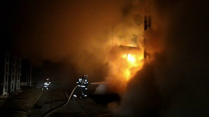 Cauza probabilă este un scurtcircuit produs la utilaj lăsat sub tensiune.