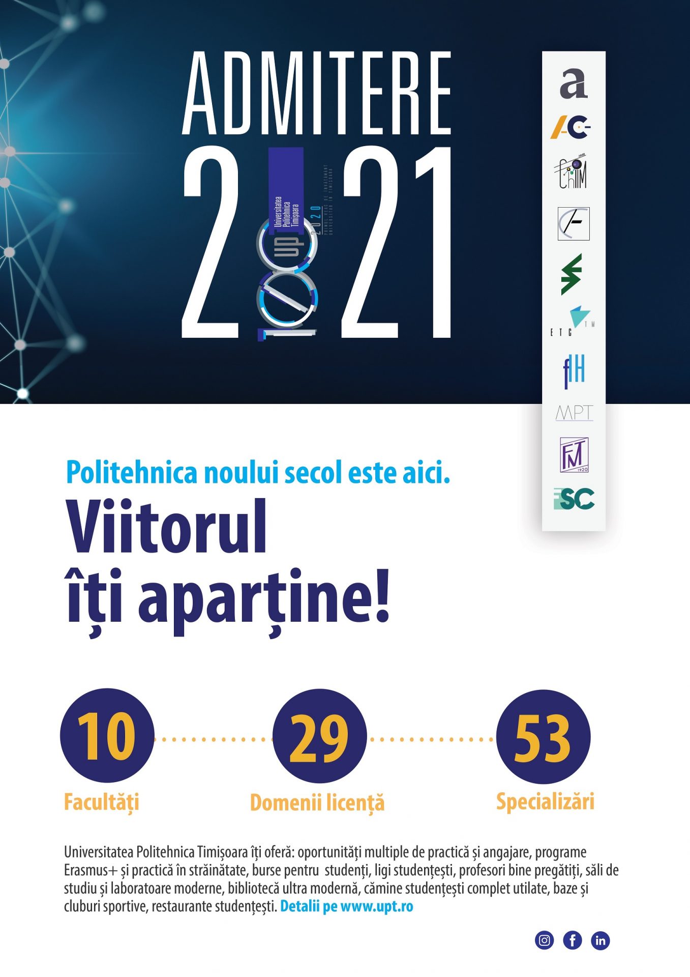pagina de Facebook a UPT sau pot fi solicitate prin e-mail, la adresa admitere@upt.ro.