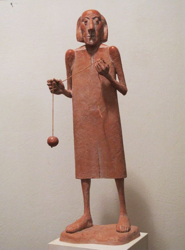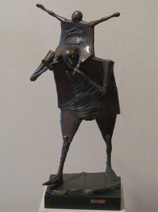 În ceea de-a treia parte a creației domnului Szakats, de după ’90, în care a lucrat preponderent în teracotă, apar personaje supranaturale (nu că arhanghelii ori îngerii n-ar fi de găsit și în „perioada de bronz”, dar acolo omenescul lor poate că e bemolizat). Peștele este unul dintre ele. Artistul îl întruchipează cu ochii exoftalmici, cu un iz de bonomie, șăgalnic și uşor uluit. Atenție, însă! Peștele domnului Szakats e unul răpitor. Și este chiar Zeus, transformat nu în taur, ca-n legendă, ci într-o ființă acvatică. E Zeus, răpitorul Europei. Căci femeia, femeile din spinarea lui Europa sunt! Și prin apă o aduce Zeus-pește pe Europa, nu zburând sau alergând. Astfel, artistul reinterpretează legenda și o reîntruchipează. Personajele ce dau viață acestei expoziții au propriile mitologii, unele dificil de citit într-o primă instanță, fiindcă sunt camuflate în siluete de regi, cântăreți, preoți, domni plini de sine, de femei opulente ori erotice, ori de vrăjitoare, de oameni-flacără, de ermiți stranii, de flautiști emaciați și așa mai departe. Mai toate personajele din perioada de bronz au trupurile emaciate, împuținate — iar acest tip de viziune anatomică e proprie artistului. Lumea sa e una în care teluricul este potențat de fantastic și de o grație ce vine dintr-un alt univers, cu imponderabilele și stranietățile lui, cu firescul și abulicul său. Pentru mine, această populație szakátsiană este o sursă de energie și de exaltare interioară, de entuziasm estetic și de potențare a propriului univers imaginar. Îmi place să cred că la fel este și pentru cei care au văzut expoziția de la M.A.T., și la fel pentru cei care n-o vor rata.
