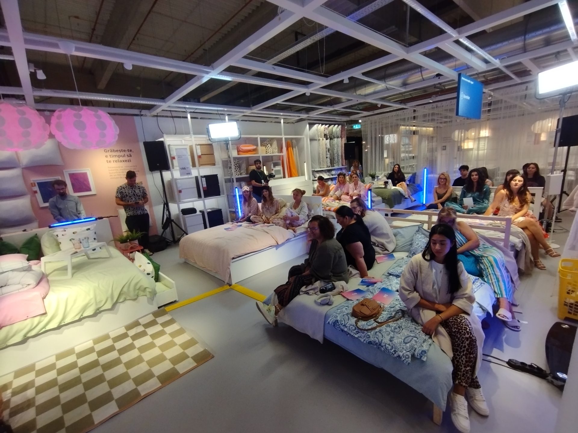 Cei care au participat la evenimentul IKEA au învățat secretele unui somn odihnitor, în timp ce se relaxau, stând în pat. La început, cei prezenți au fost chestionați cu privire la obiceiurile lor de a dormi, calitatea somnului, dar și ceea ce mănâncă înainte să adoarmă.