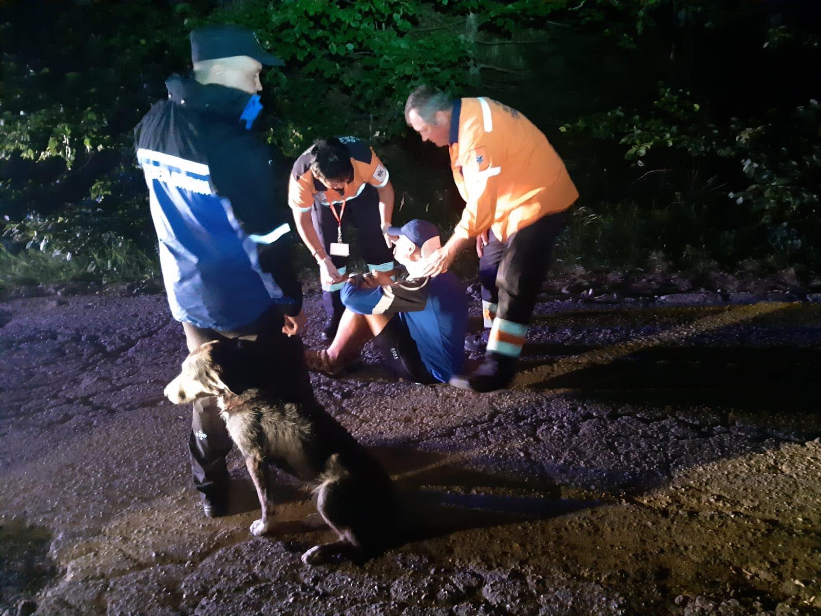 Norocul său a fost că un câine a venit lângă el și l-a încălzit cu trupul lui până când salvatorii l-au învelit în pături. A fost solicitată și o ambulanță de la SAJ Caraș-Severin care a preluat ciclistul și l-a dus la spital. Câinele salvator a rămas în pădurea cu pricina.