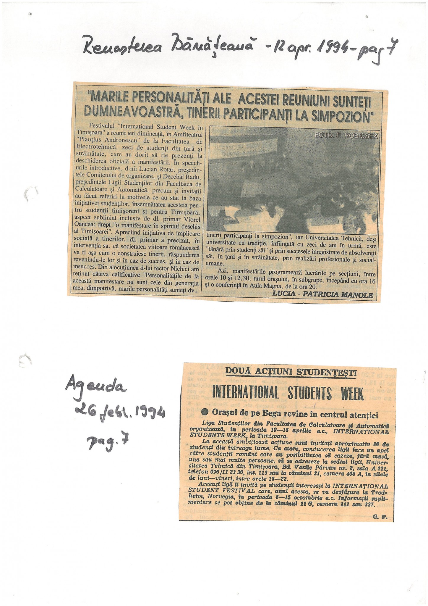 În prima ediție a festivalului, ceremonia de deschidere a avut loc în 11 aprilie 1994 într-unul dintre amfiteatrele Universității Politehnica Timișoara (numită pe atunci Universitatea Tehnică Timișoara). După doar 5 ani de la revoluție, studenți din Timișoara, voluntari ai Ligii AC (numită pe atunci LSFCAT) au avut curajul, entuziasmul și dedicația să facă din Timișoara un loc de întâlnire pentru studenții din toată lumea.