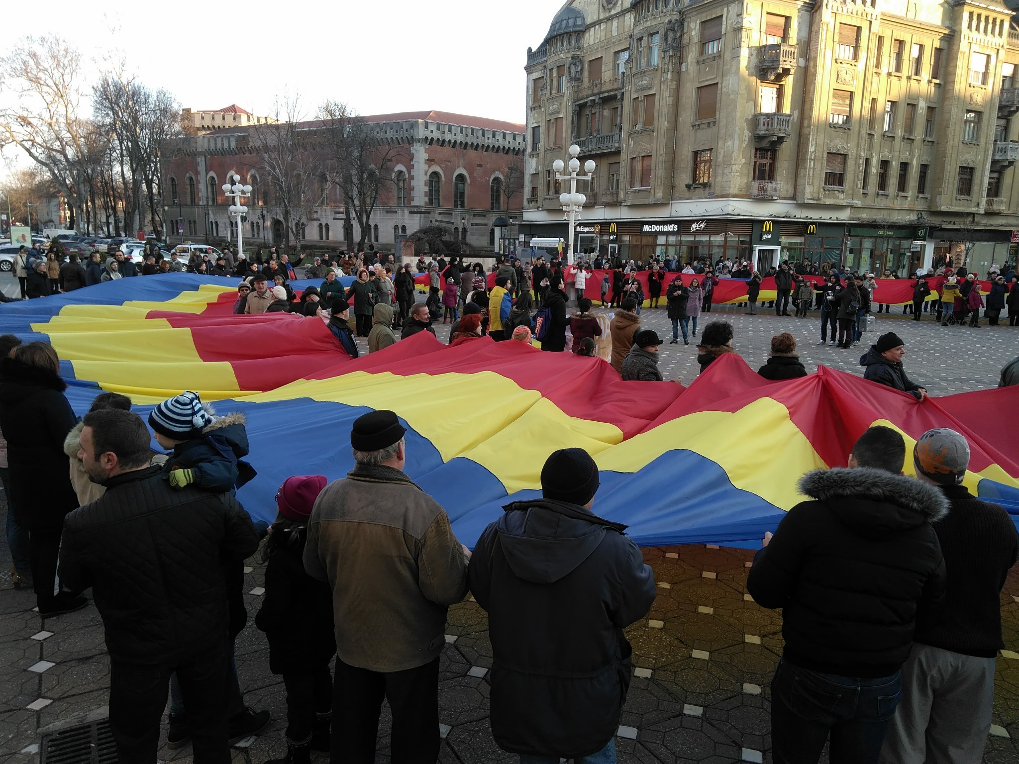 Un grup de entuziaști au gândit un mod mai puțin obișnuit de a marca momentul sărbătorii legate de Unirea din 24 ianuarie. Pentru a cinsti cei 159 de ani trecuți de la Unirea Principatelor de la Gurile Dunării (Moldova și Țara Românească) sub o conducere comună, cetățenii Timișoarei au fost invitați în Piața Victorie la o horă.