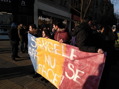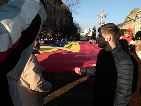 Cu acestă ocazie a fost desfășurat un steag tricolor în lungime enormă, de 100 de metri. Poate ar fi fost potrivită o lungime simbolică de 159 de metri? Toți cei prezenți au prins de marginile fâșiei lungi de drapel și au plecat într-un marș simbolic, cu plecarea și sosirea pe platoul din fața Operei. De fapt s-a dat un ocol al pieței până la Catedrală cu întoarcere pe latura opusă.