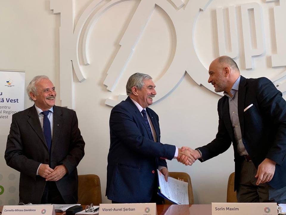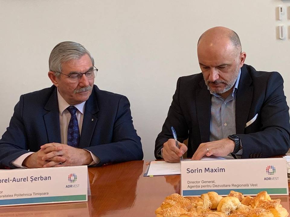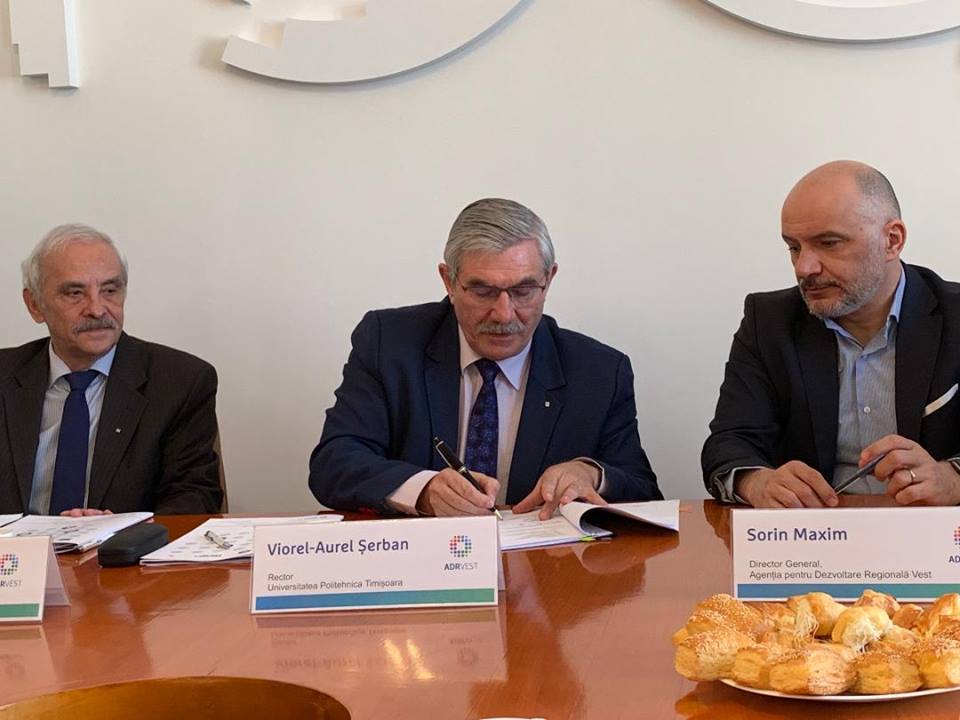 Contractul de finanțare a fost semnat, miercuri, la Rectoratul Universității Politehnica Timișoara de reprezentanții ADR Vest și cei ai școlii de învățământ superior.