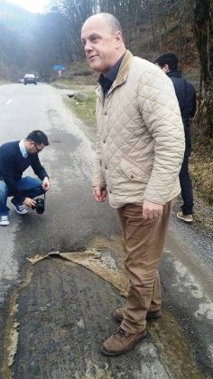 Primarul Reșiței, Ioan Popa, însoțit de consilieri și de directori de direcții din Primărie, a deplasat miercuri jurnaliștii în cartierul Minda, la ieșirea dinspre Văliug, acolo unde se văd cel mai bine efectele asfaltării considerate defectuoase dar realizată pe bani mulți, în mandatulul fostului primar Mihai Stepanescu. 12 milioane de euro credit (marea majoritate a banilor a mers la asfaltare) iar drumurile, garantate 15-20 de ani, n-au ținut nici trei ani. Adică, până exact când au ieșit din garanție. „Vom termina ratele la creditul acesta când eu, dacă mai trăiesc, voi avea 80 de ani!” a răbufnit Popa, care e decis să acționeze în instanță pe constructorul celor patru tronsoane de drum reșițean. Din punctul de vedere al Primăriei, drumurile n-au respectat proiectul.