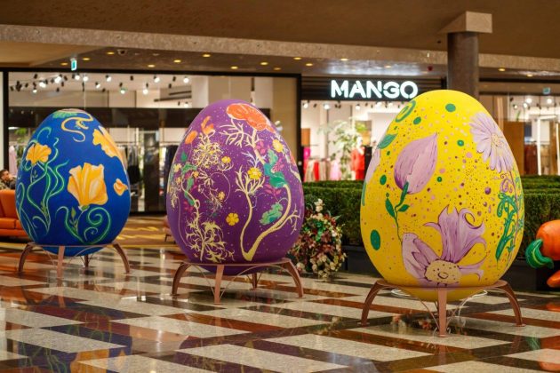 În același timp, curioșii pot admira cele trei ouă gigant, cu dimensiuni de 2 m, „încondeiate” manual de elevii de la Liceul de Arte Plastice și Liceul „Ion Vidu”. Cele trei proiecte au fost coordonate de artistul vizual Horațiu Cristian Pavelescu și sunt expuse în Atrium, până pe 21 aprilie. Formatul atipic i-a îndemnat pe elevi să experimenteze tehnici cunoscute și să lase culorile să prindă viață, iar elementele de art-nouveau sunt temele principale ce se regăsesc pe cele trei ouă.