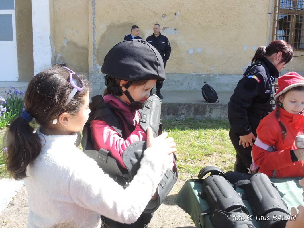 La final, cei mici au putut afla şi câteva din tainele muncii jandarmilor. Au îmbrăcat vestele antiglonț, au încercat căștile de protecție. Cel mai mare succes l-au avut atelierele de prezentare a tuturor tipurilor de arme din dotarea jandarmilor. Copii au pus mâna pe arme și nu au fost deloc impresionați de greutatea lor. Unii au mărturisit că au și ei acasă așa ceva, dar sunt mai ușoare. Probabil din plastic.