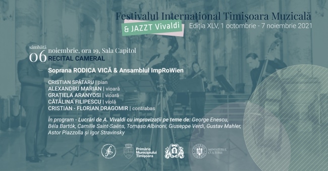 Festivalul Internațional Timișoara Muzicală | ediția XLV, organizat împreună cu Opera Națională Română din Timișoara, continuă până pe 7 noiembrie. În închiderea Festivalului Internațional Timișoara Muzicală ImpRoWien și Rodica Vică vor susține un recital cameral sâmbătă, 6 noiembrie, de la ora 19.