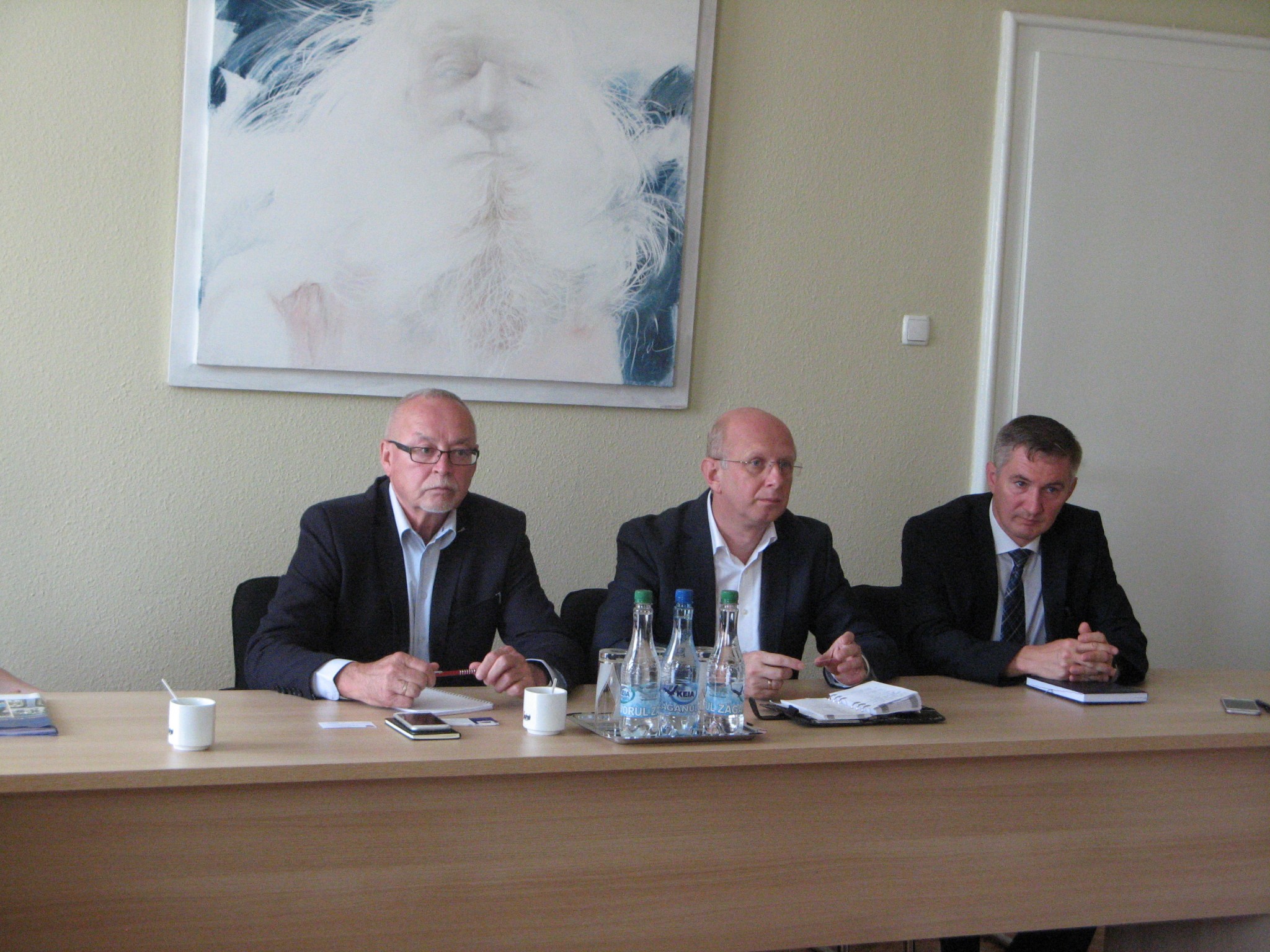 Președintele Consiliului Județean Timiș, Sorin Grindeanu, a avut, joi, la sediul Palatului Administrativ, o întrevedere cu o delegație din Csongrad, condusă de președintele respectivului consiliu județean, Kakas Bela.