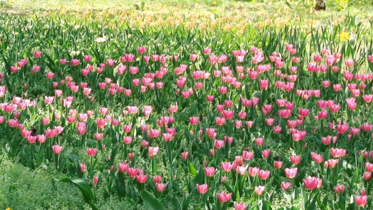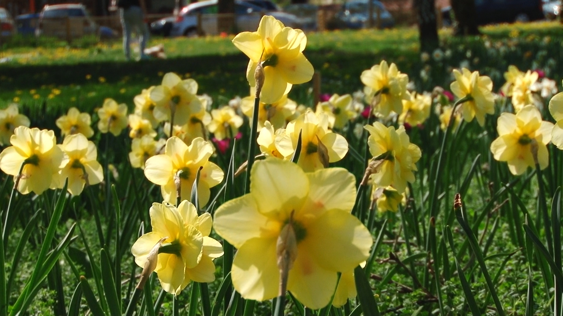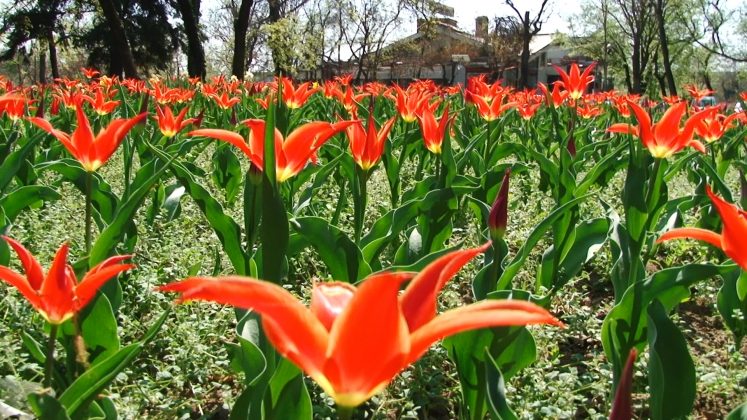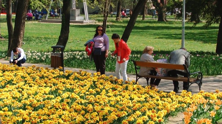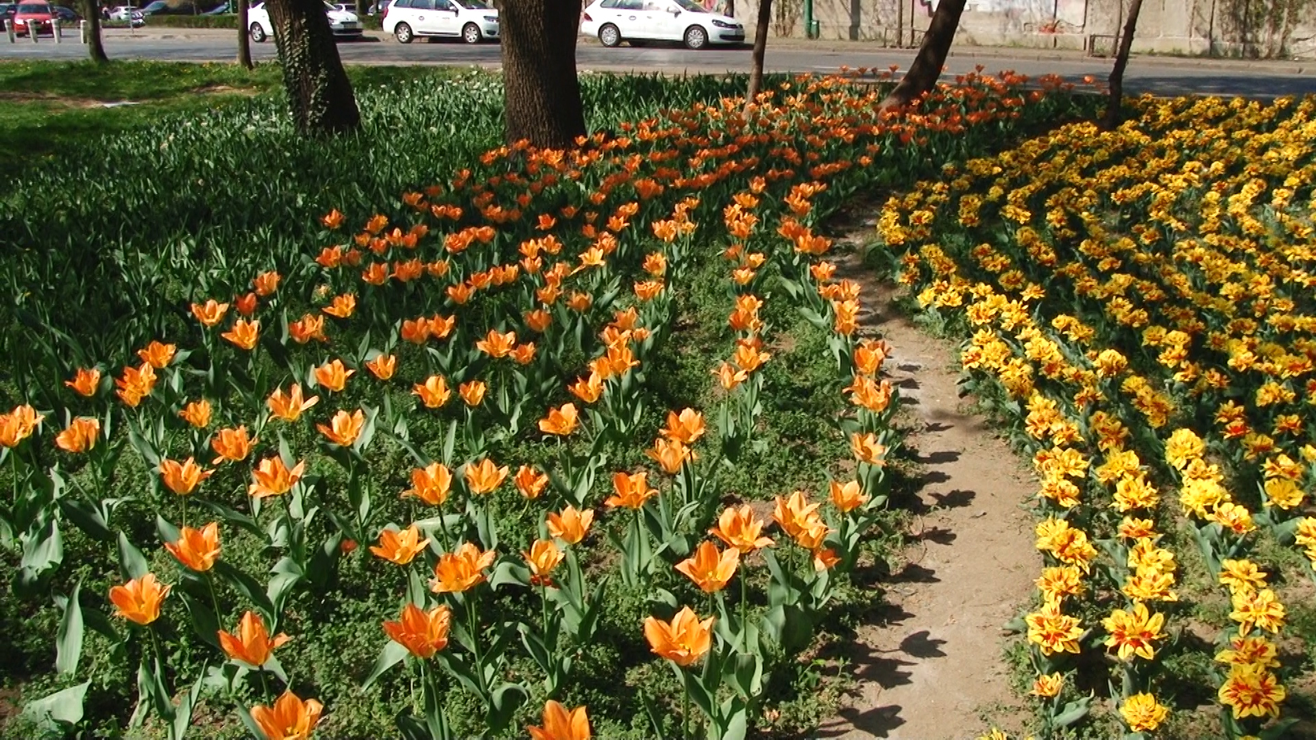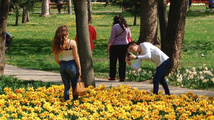 Încă nu este duminica Florilor, dar parcul este inundat de lalele ca o o alee de grădină olandeză. Sunt de toate culorile și formele. Chiar și din cele duble și încrețite pe margini. Atracția este maximă pentru trecătorii ce le admiră și fură mii de fotografii. De fapt, este singurul furt acceptat în acest parc. Nu ca cel din zilele trecute, când un neisprăvit fără căpătâi, dar plin de idei proaste a încărcat sacii cu câteva sute de narcise în ideea că se va îmbogăți. Narcisele, atât de firave și trecătoare sunt un covor compact de galben diafan ce trebuie lăsate pe teren. Odată smulse, oricum nu rezistă prea mult și se ofilesc într-o singură zi.