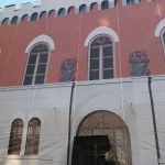 Desenul spânzurat pe fațadă reprezintă imaginea clădirii, așa cum va arăta la final.
