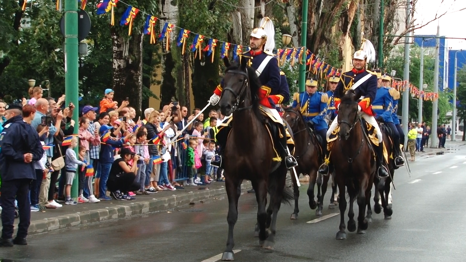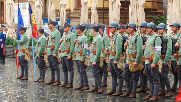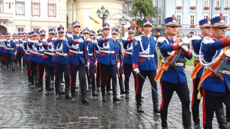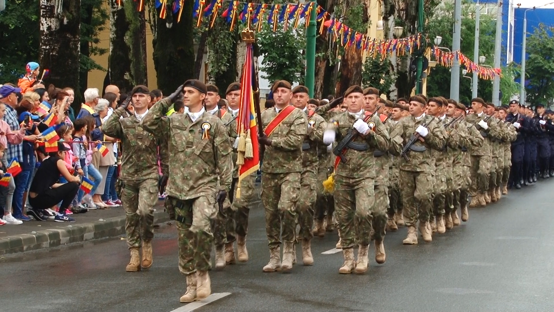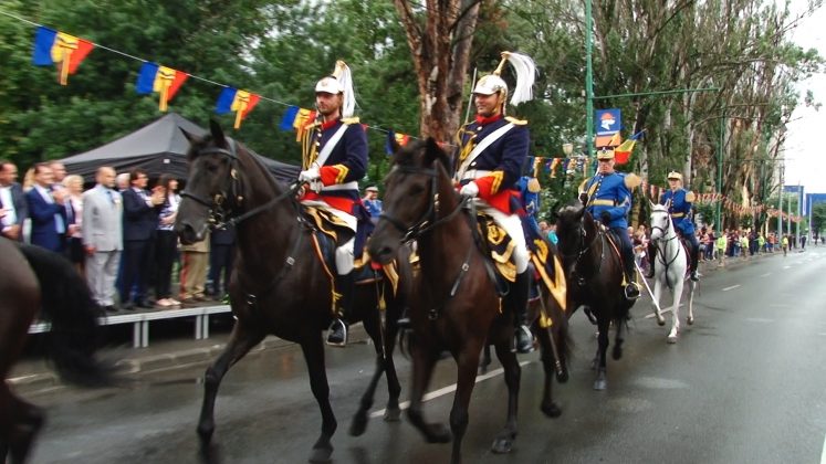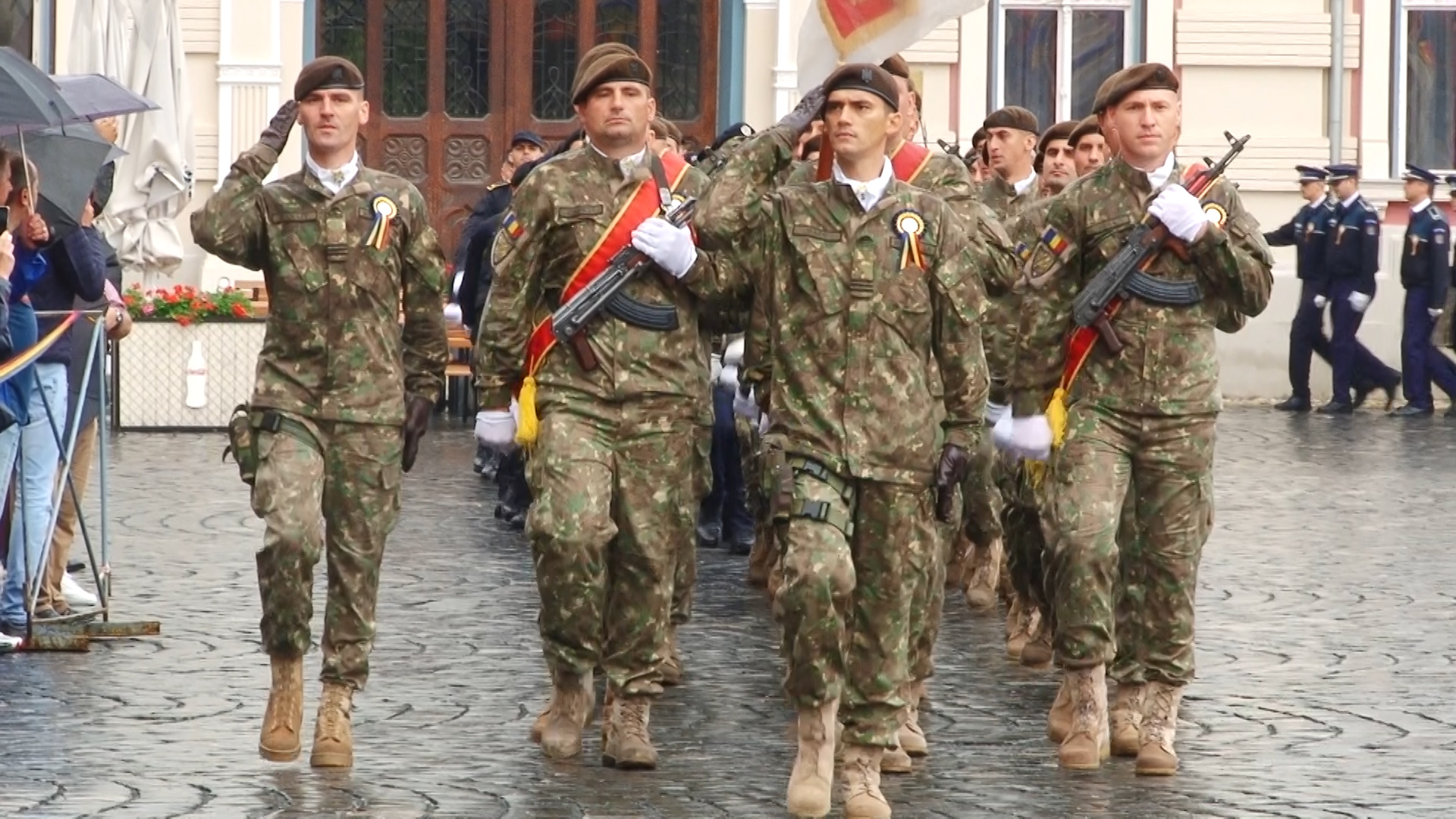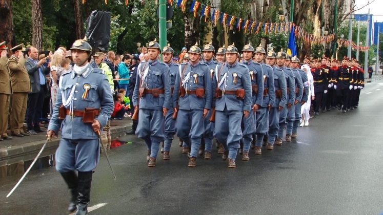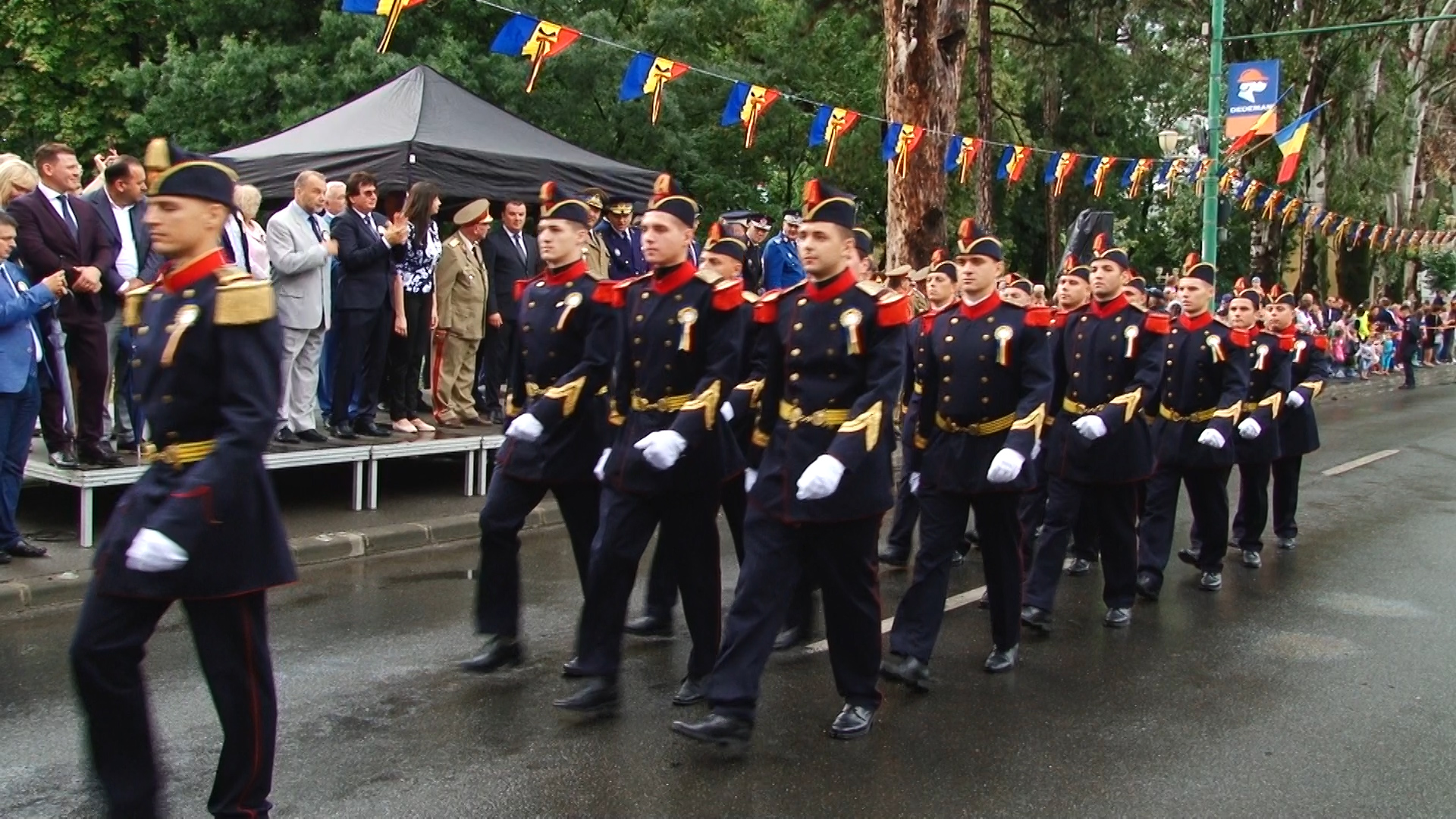 Momentului sărbătoresc i-a fost ciuntit fastul din cauza vremii potrivnice dar soldații totuși au defilat cu entuziasm prin băltoace cu uniformele îngreunate de apă.