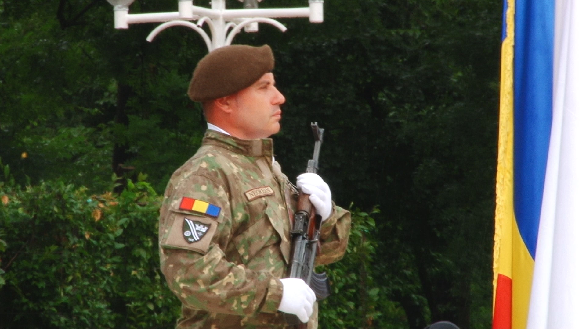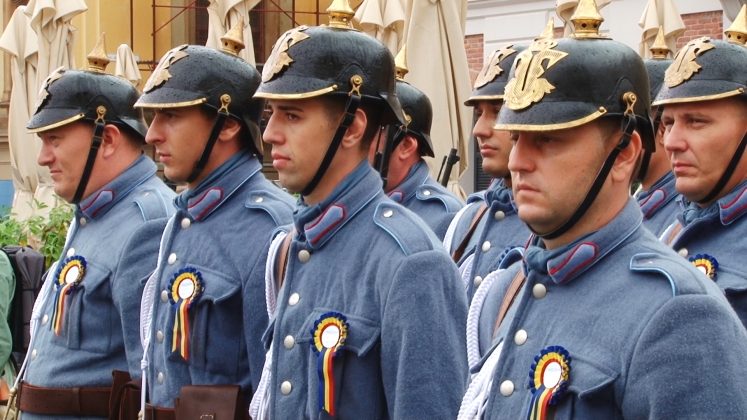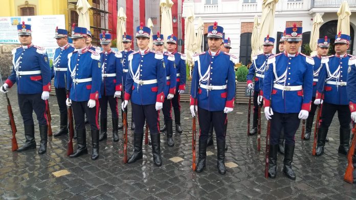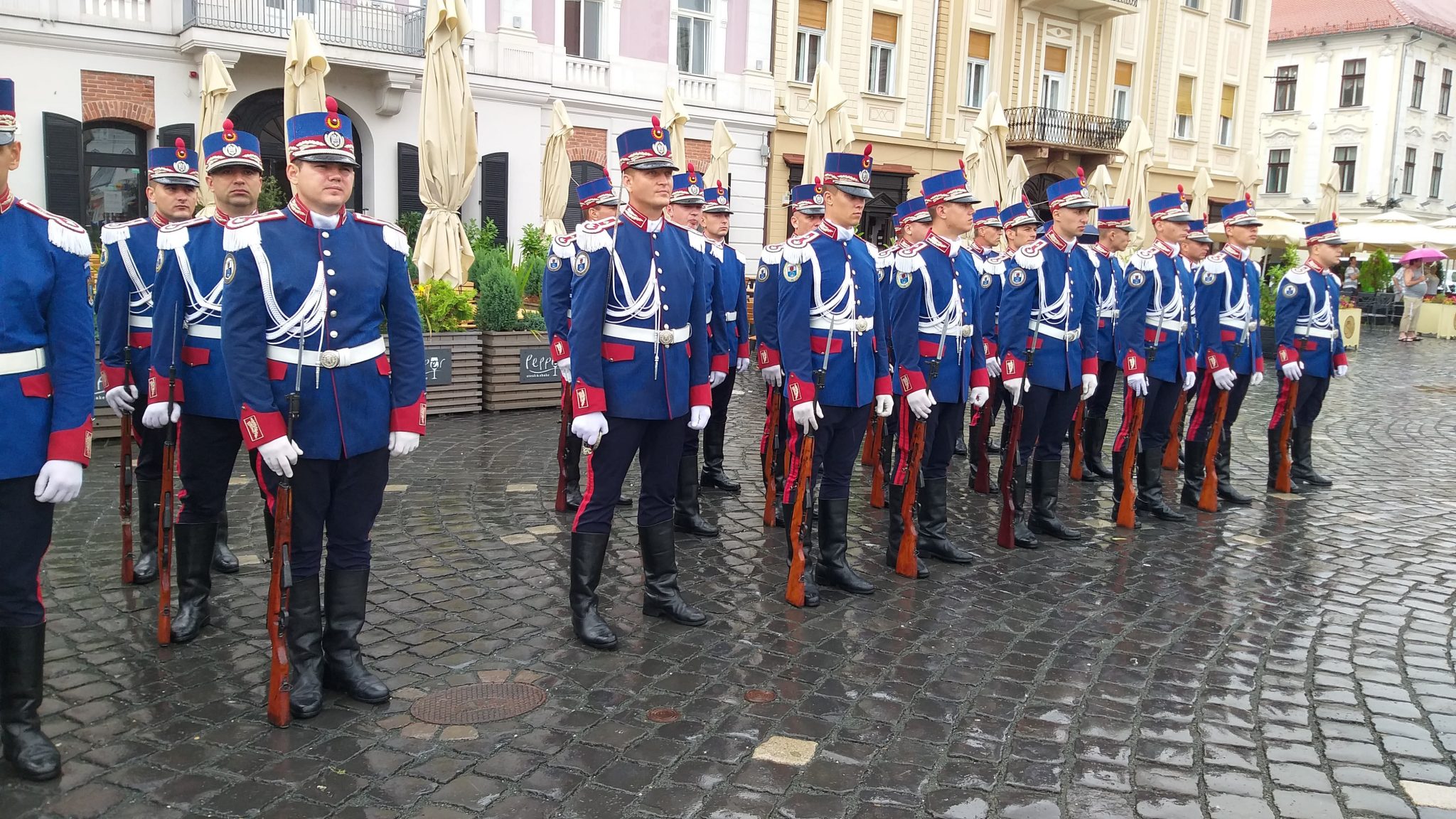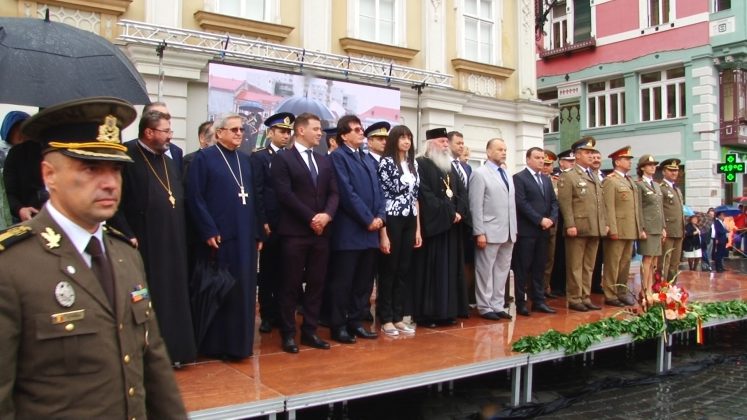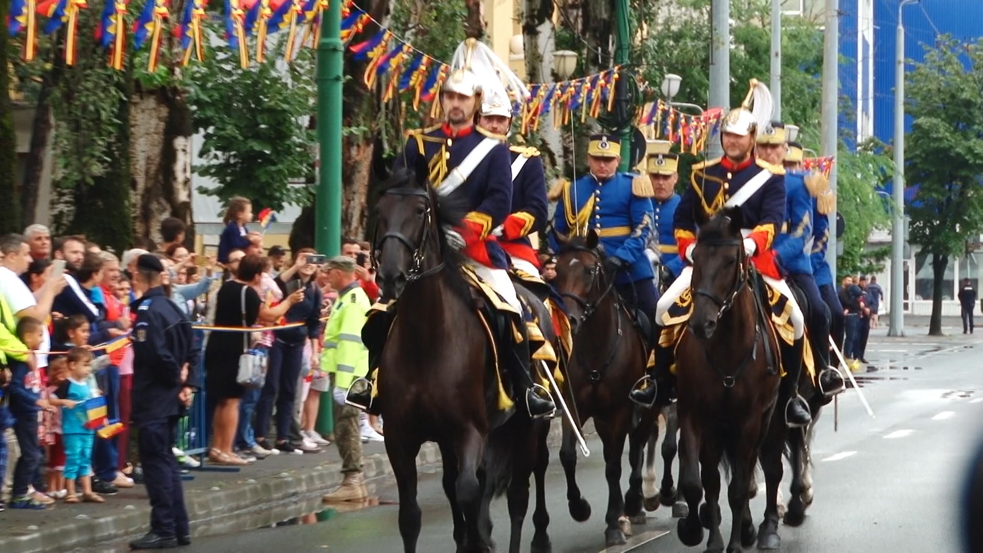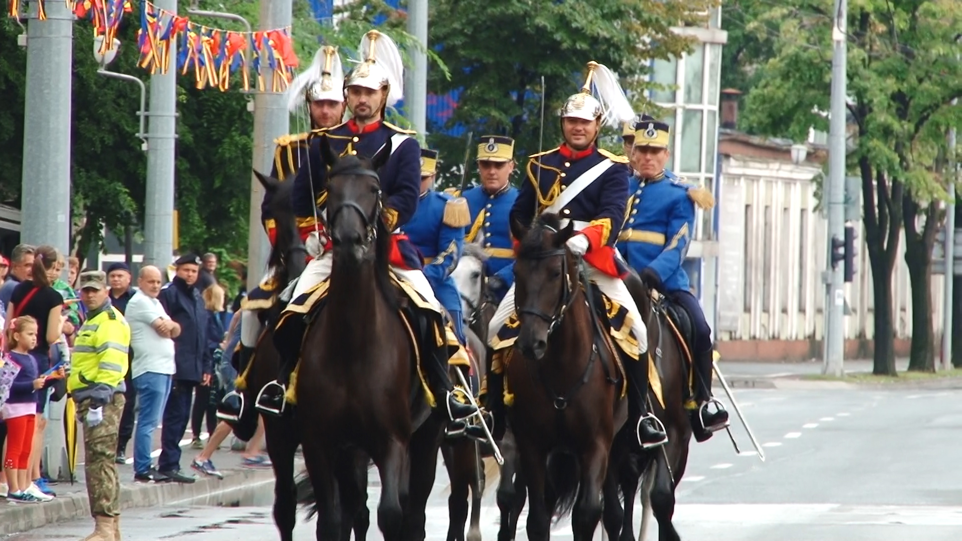 Momentului sărbătoresc i-a fost ciuntit fastul din cauza vremii potrivnice dar soldații totuși au defilat cu entuziasm prin băltoace cu uniformele îngreunate de apă.