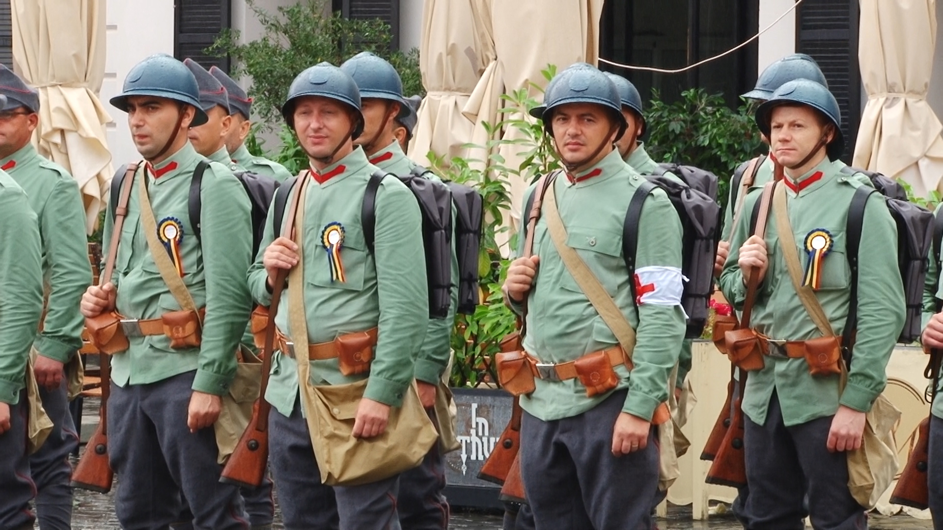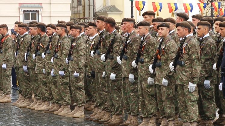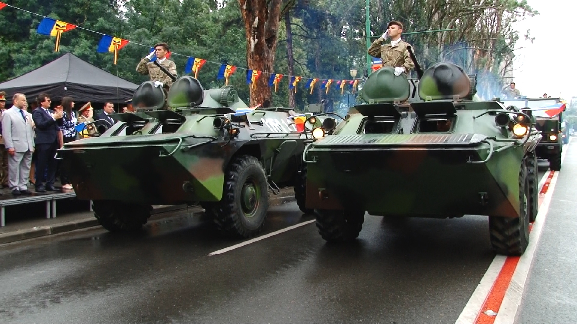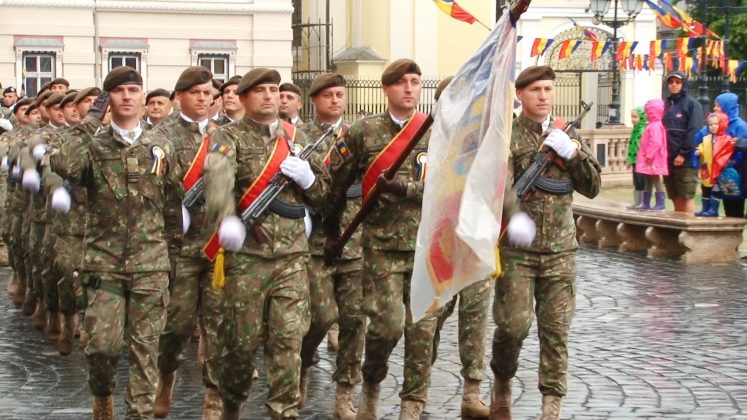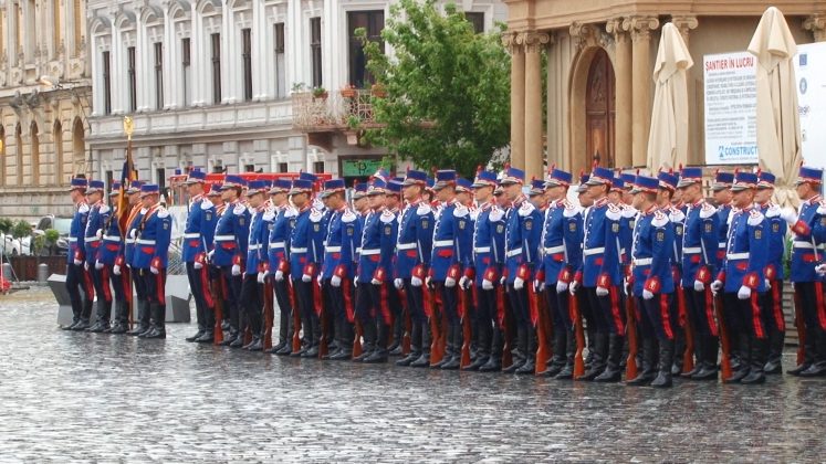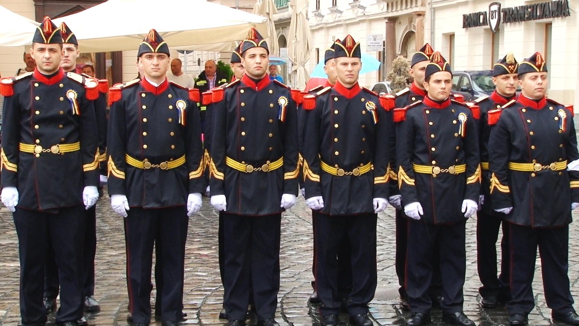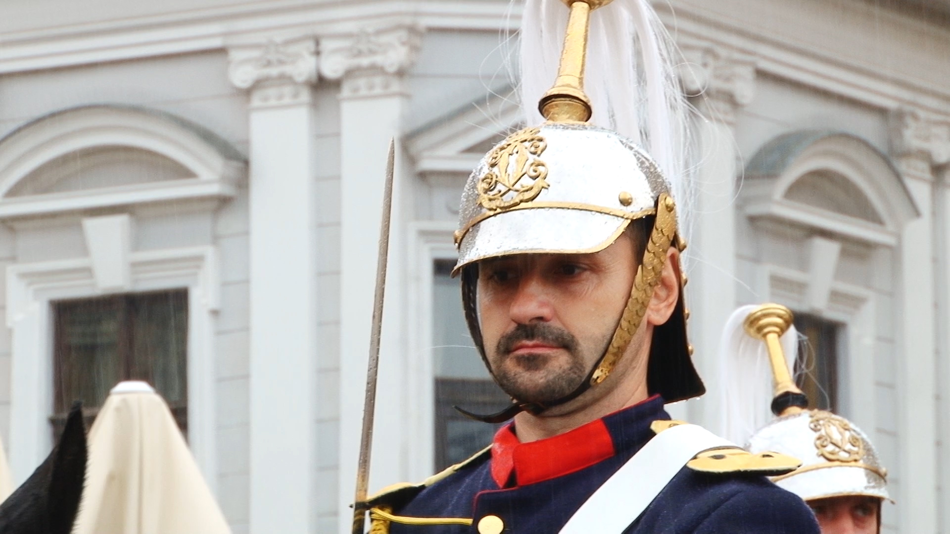 Momentului sărbătoresc i-a fost ciuntit fastul din cauza vremii potrivnice dar soldații totuși au defilat cu entuziasm prin băltoace cu uniformele îngreunate de apă.