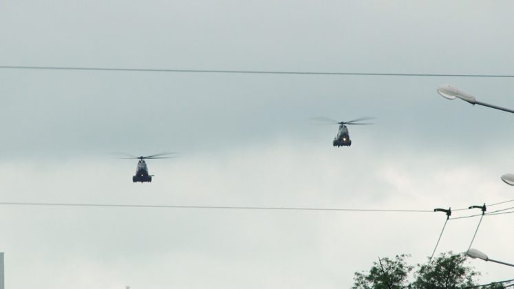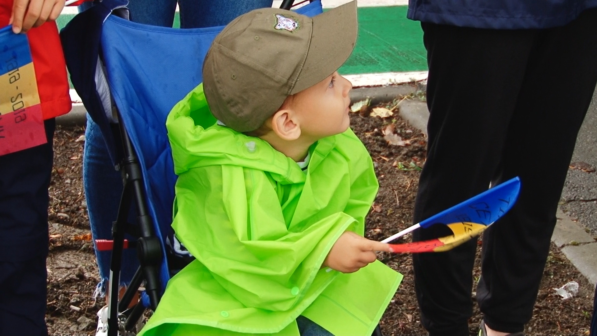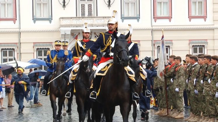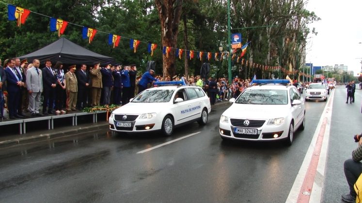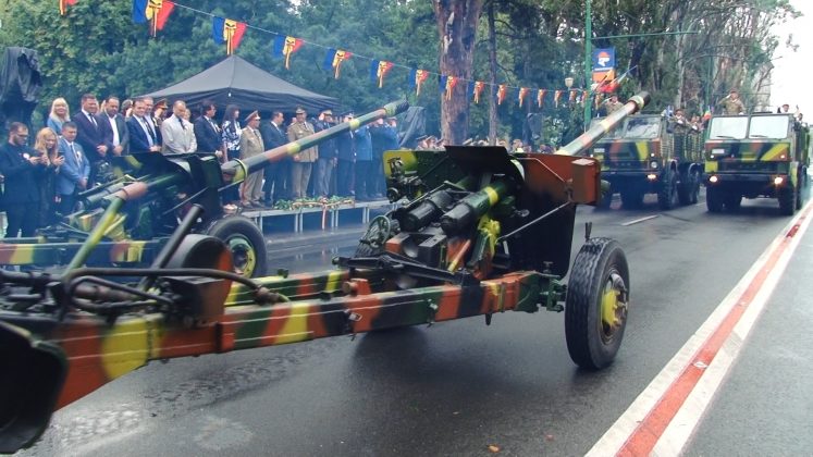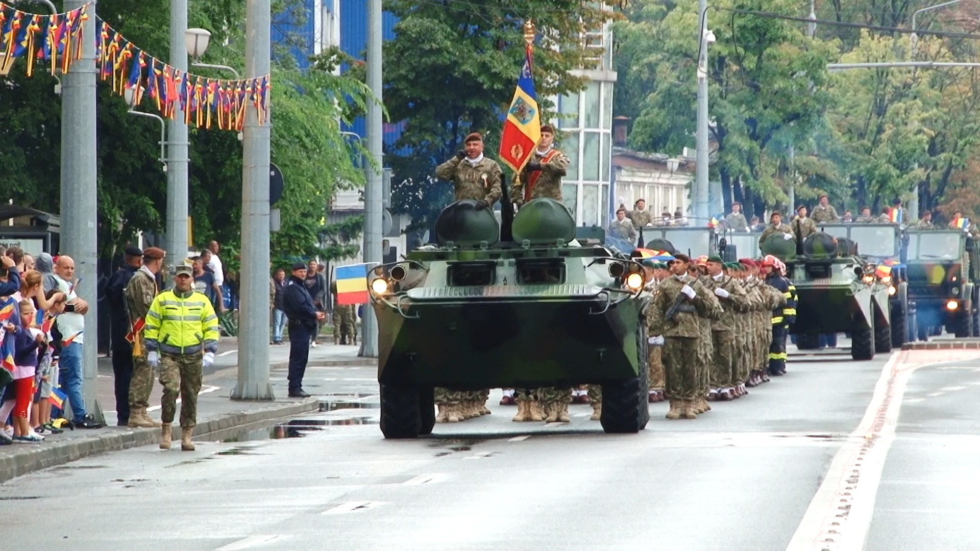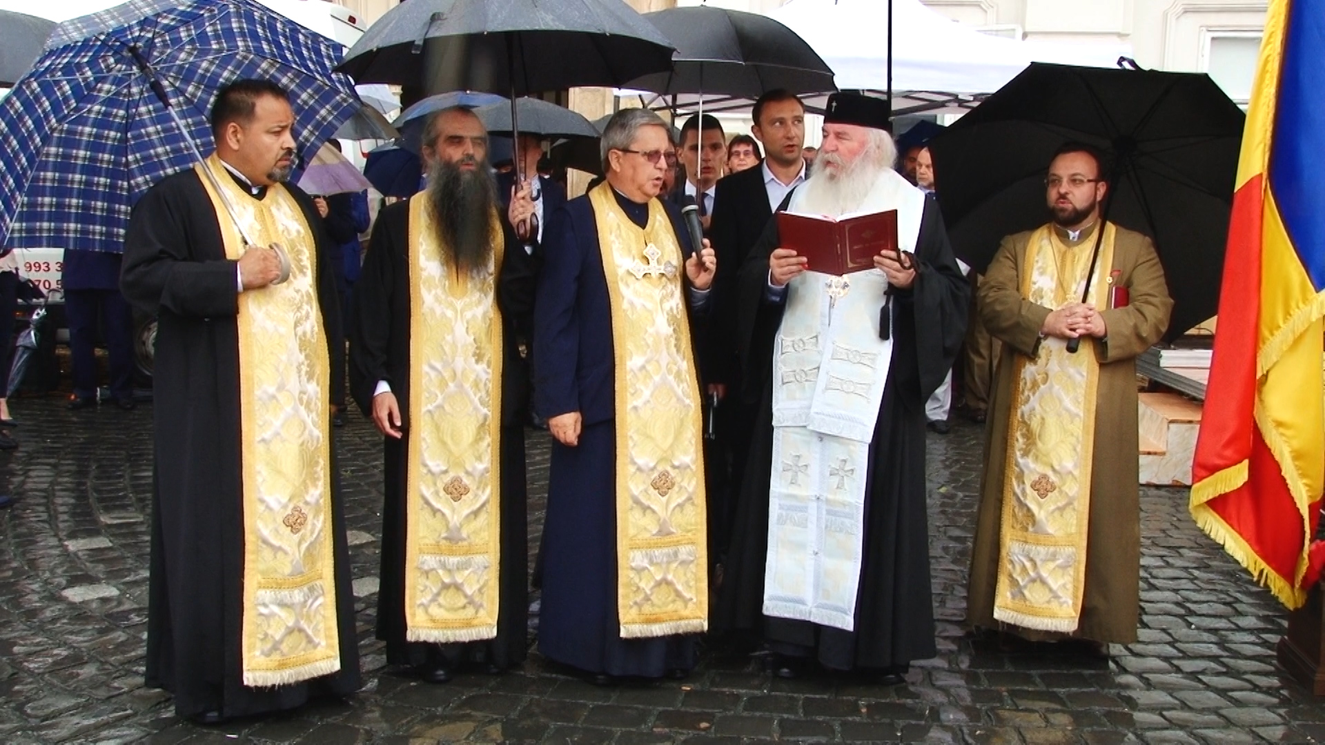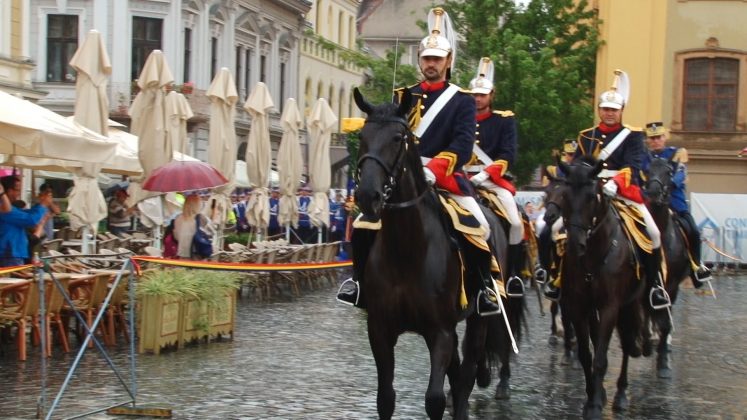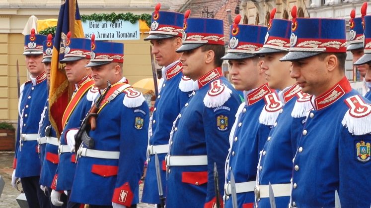 Momentului sărbătoresc i-a fost ciuntit fastul din cauza vremii potrivnice dar soldații totuși au defilat cu entuziasm prin băltoace cu uniformele îngreunate de apă.