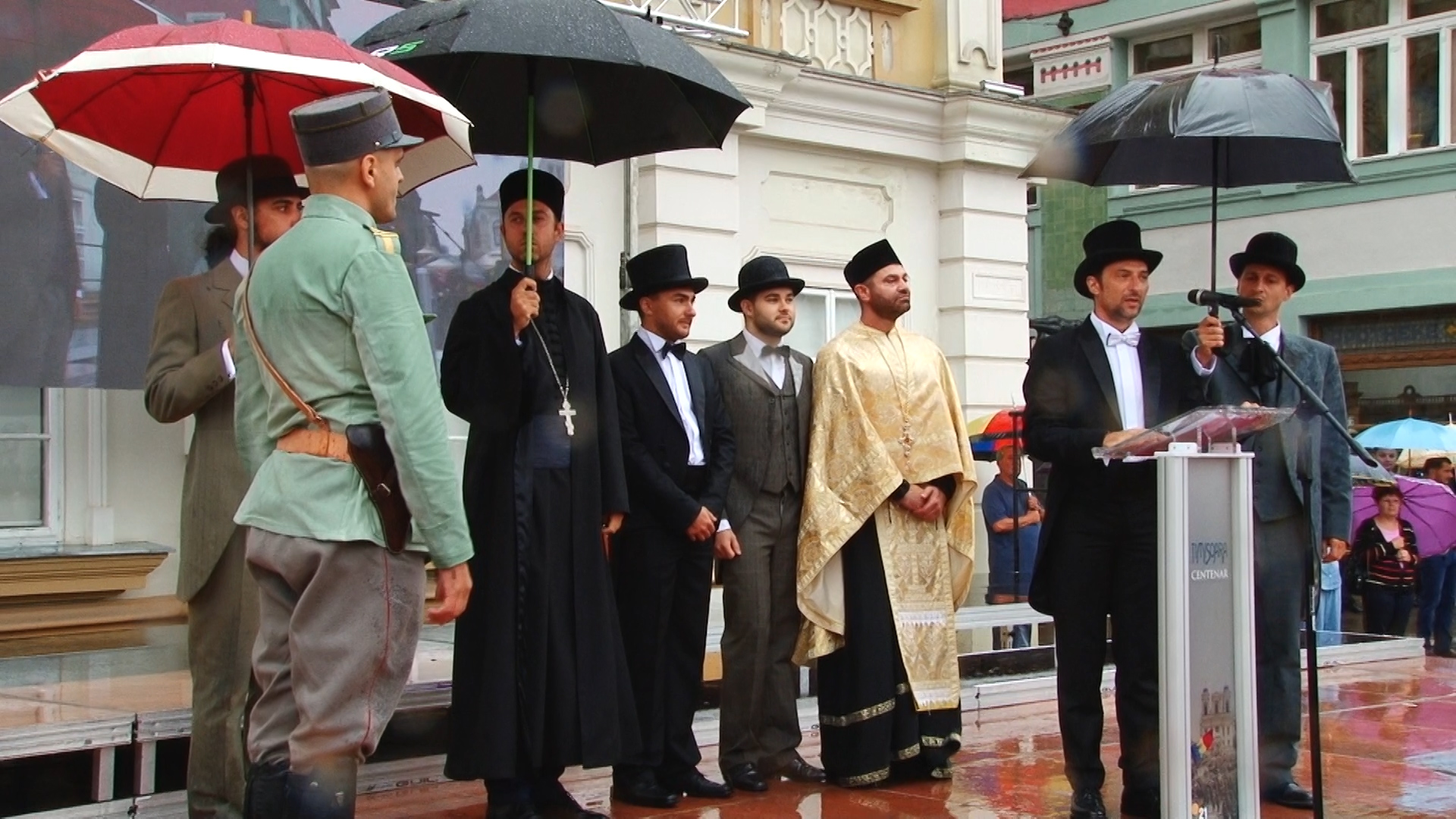 Azi la o sută de ani de la acel eveniment a fost recreată scena militară cu soldați în uniforme de epocă și cu un colonel impozant pe un cal frumos ce juca rolul lui Virgil Economu. Jandarmii, pompierii dar și corpul surorilor medicale s-au îngrijit să iasă totul cu bine. Scena istorică a fost completată de prezența „oficialităților” de pe timpuri ce și-au jucat bine rolurile.