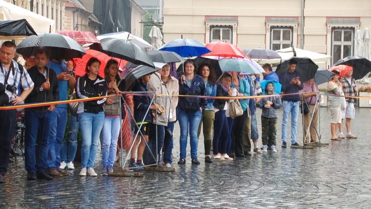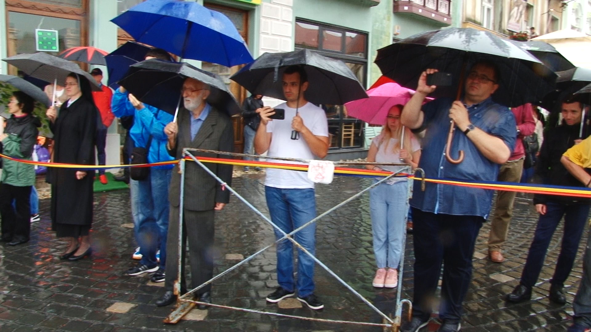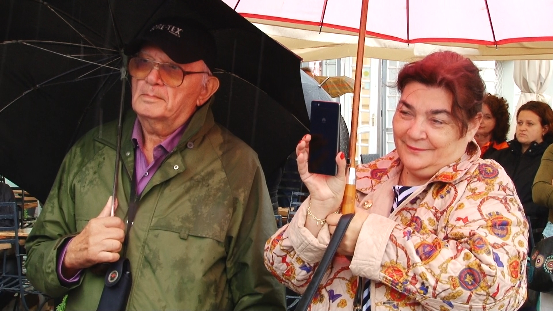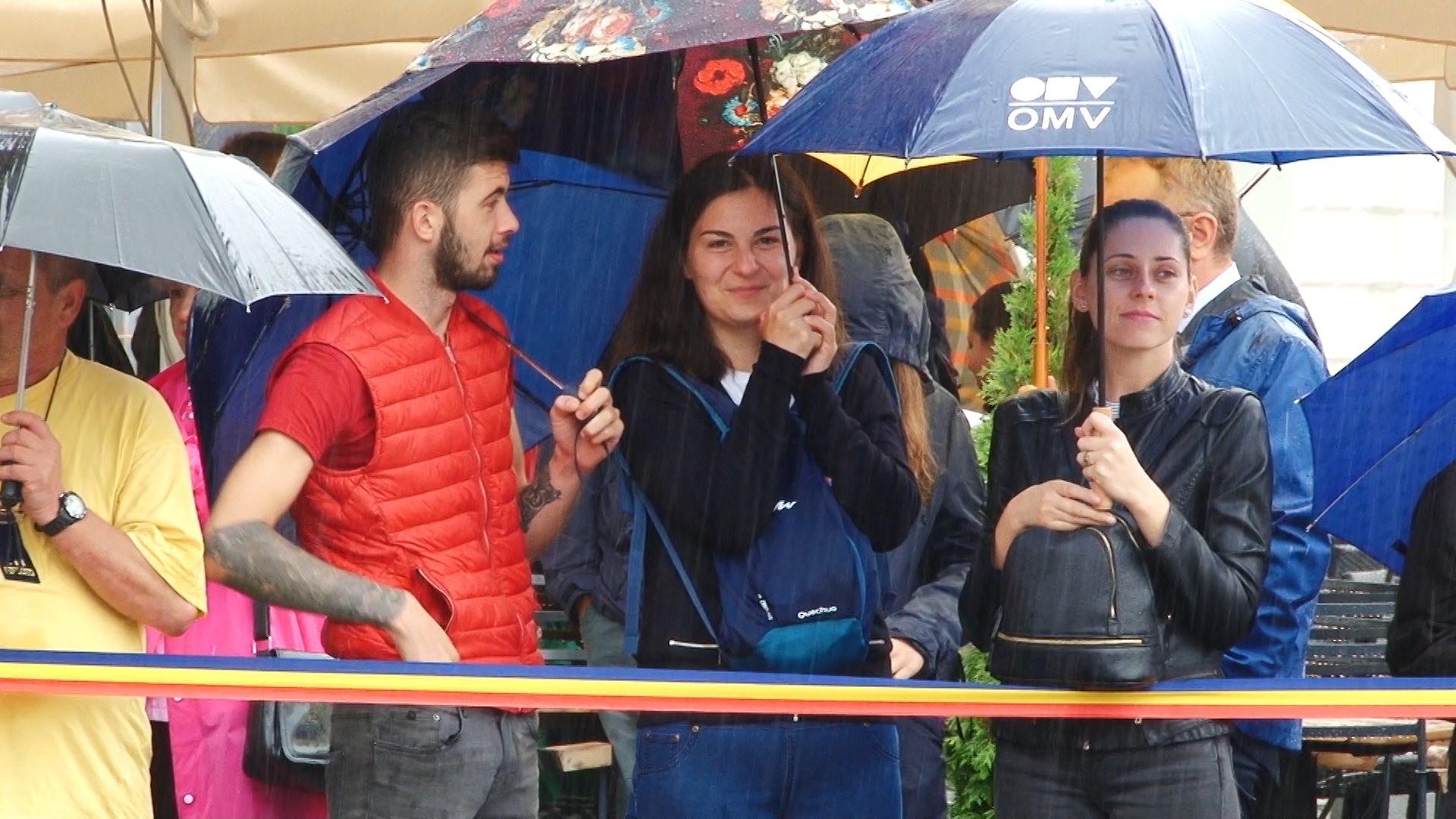 Cetățenii orașului nu au ieșit în număr prea mare din cauza ploii sâcâitoare ce a turnat continuu.
