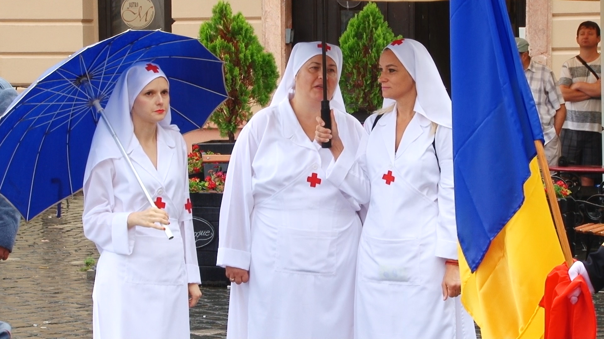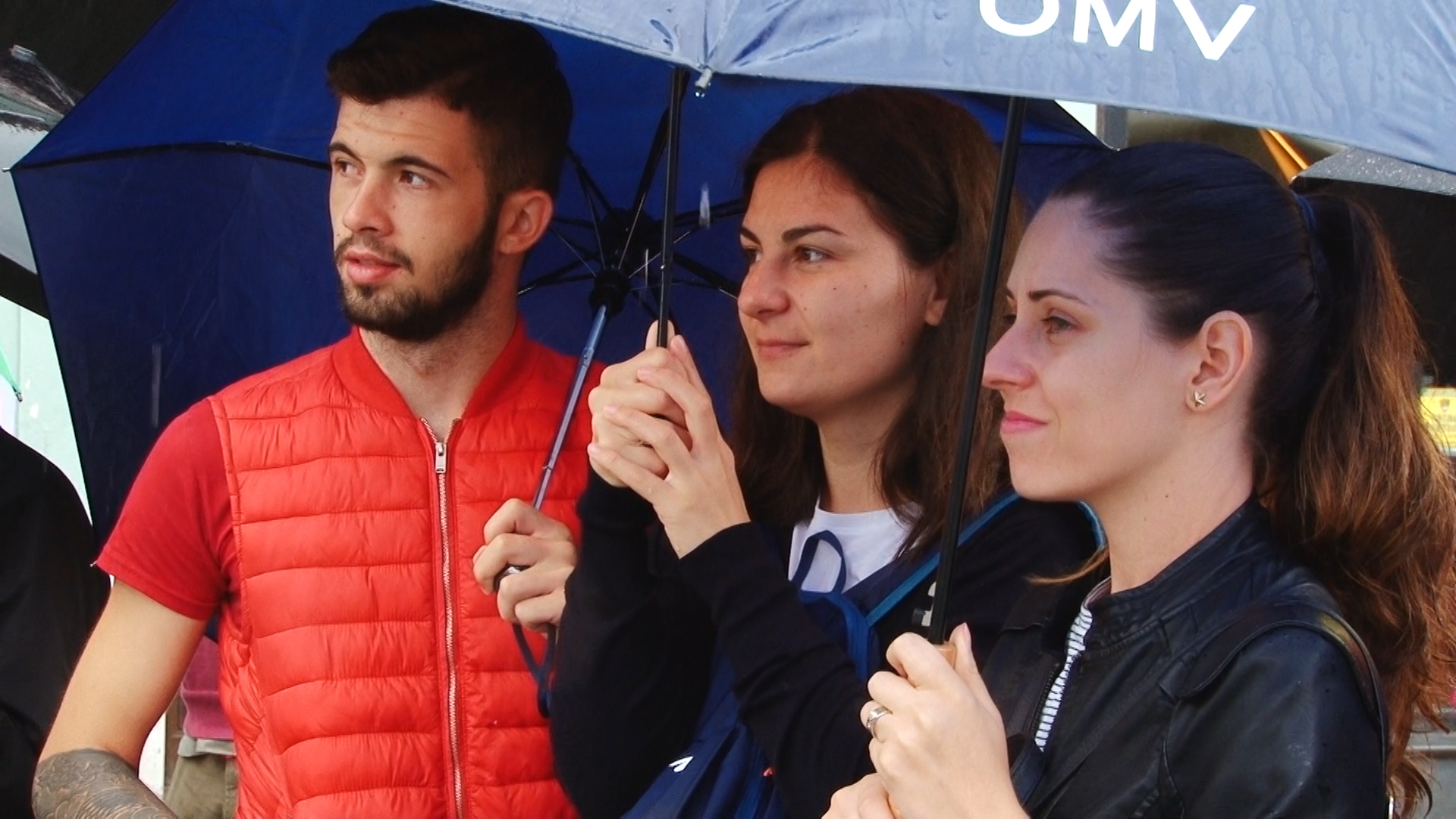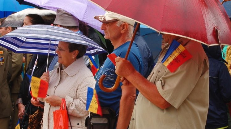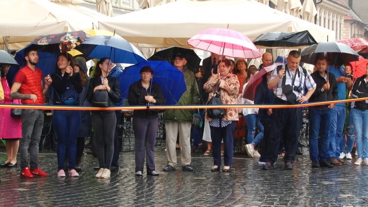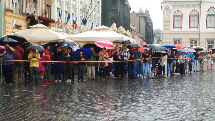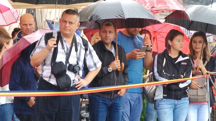 Cetățenii orașului nu au ieșit în număr prea mare din cauza ploii sâcâitoare ce a turnat continuu.