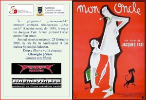 În 1958, Jacques Tati lansa una dintre cele mai rafinate satire cinematografice despre modernitate și alienare urbană. „Mon oncle” (Unchiul meu) este al doilea film în care apare personajul „monsieur Hulot” și marchează tranziția lui Tati spre un stil vizual elaborat, aproape coregrafic, în care arhitectura și obiectele devin personaje în sine.