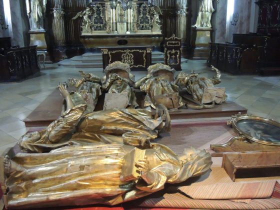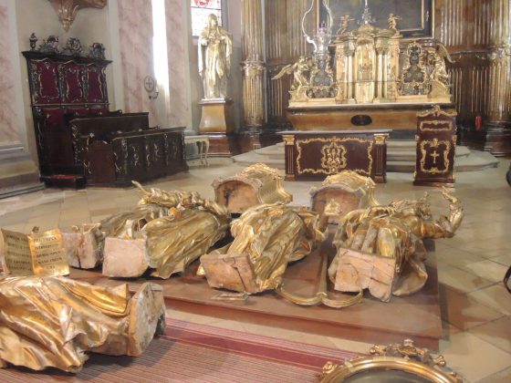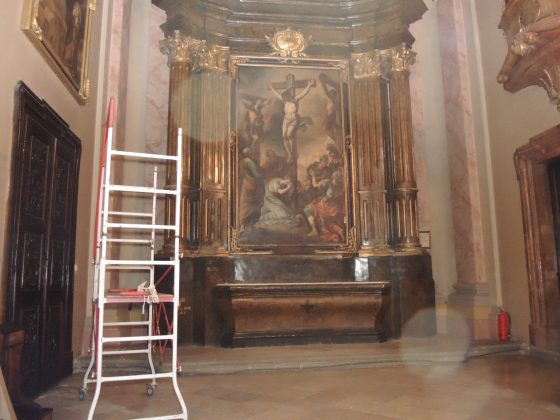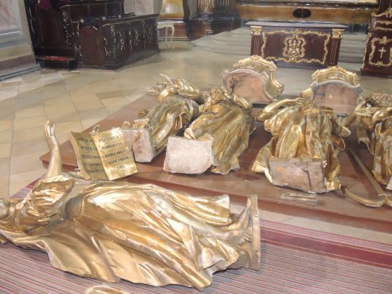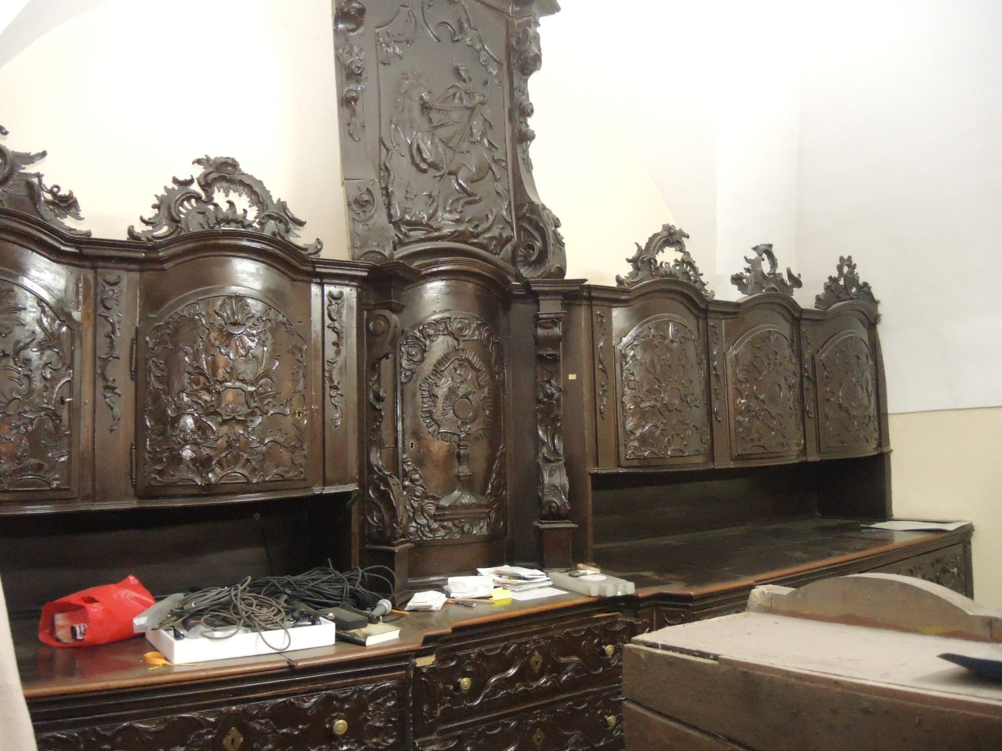 Meșterii au început deja să trudească la migăloasa lor muncă. Deja au fost demontate o bună parte din statuile ce împodobeau altarul principal. Acestea vor fi foarte atent inspectate și reparate. Trecerea a aproape trei secole a lăsat urme foarte vizibile. Lemnul și stucaturile sunt serios avariate.