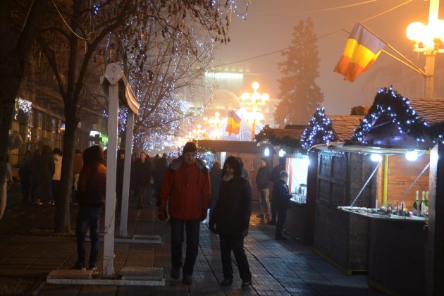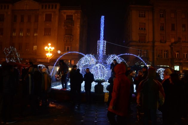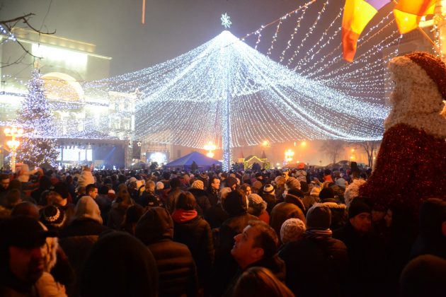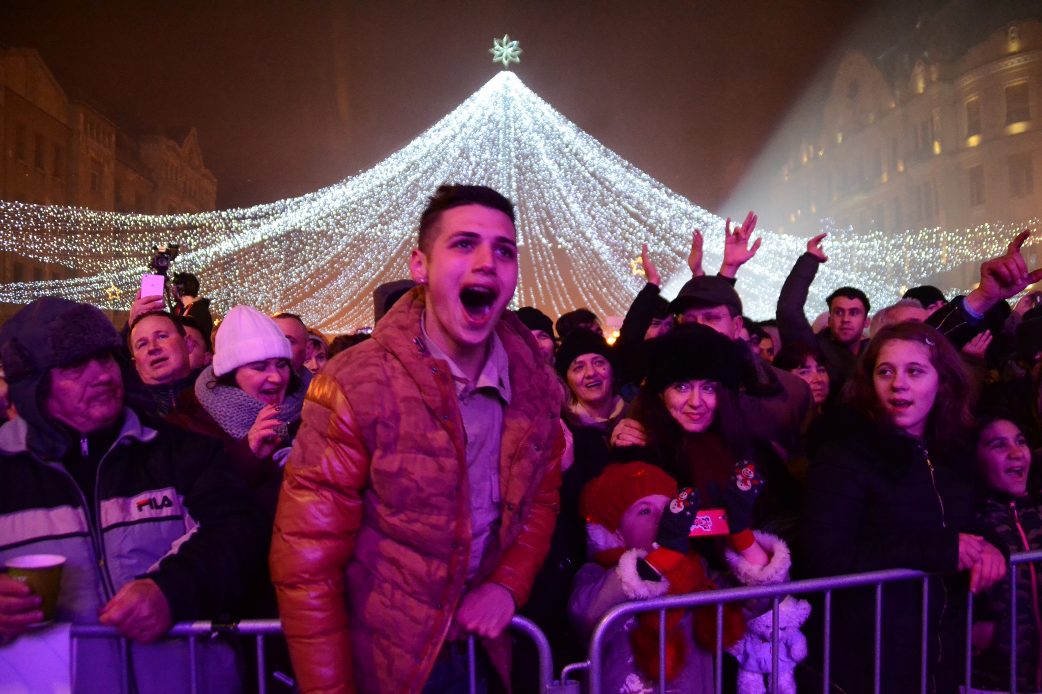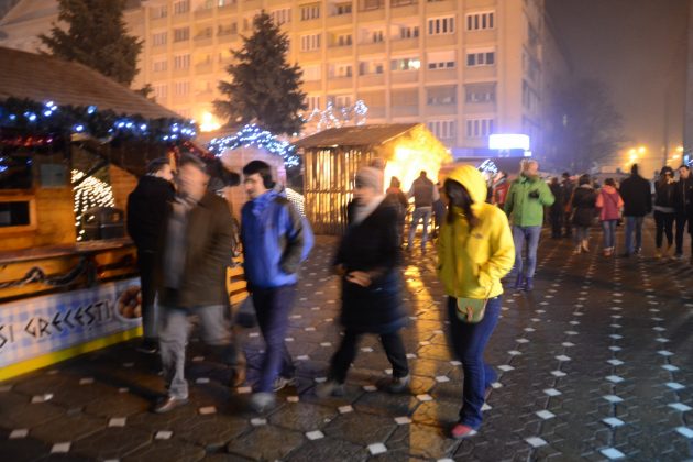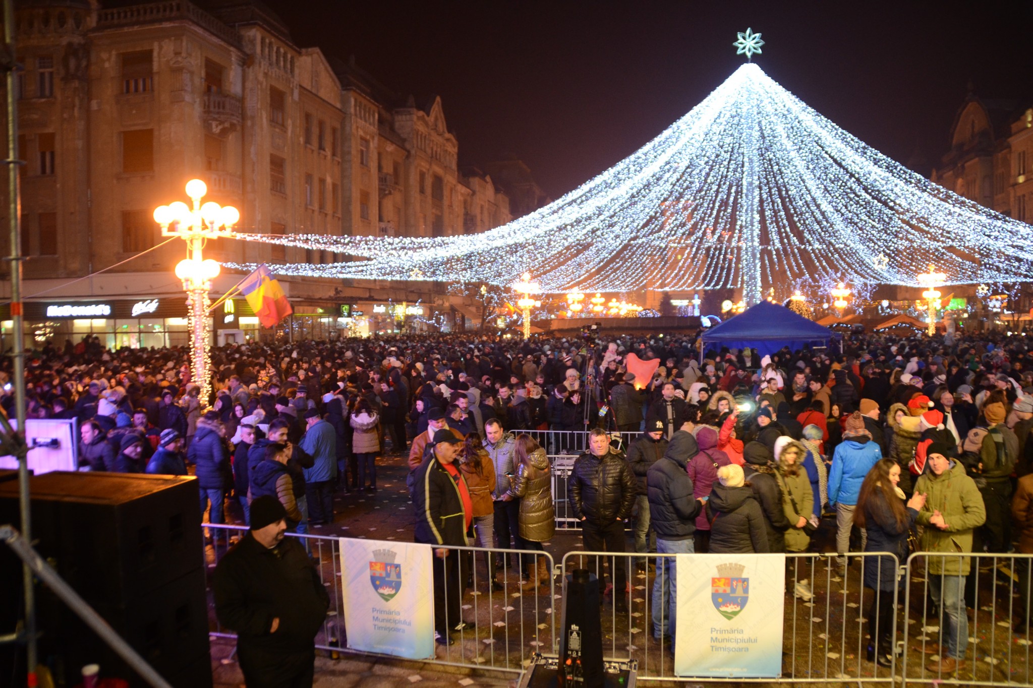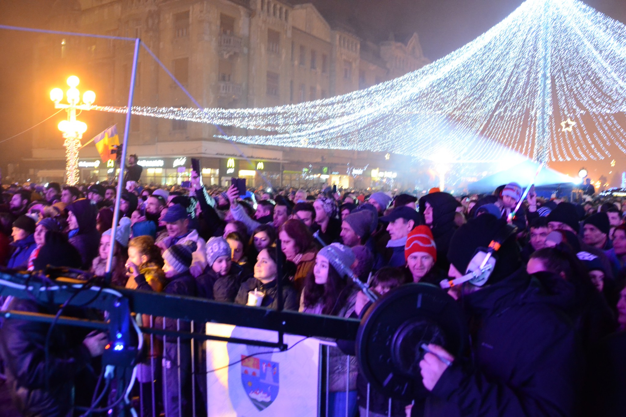 Conform unei tradiții încetățenite de câțiva ani și în Timișoara, cei ce nu au plecat din oraș vin măcar pentru câteva ore în centru. Petrecerea în aer liber dă un plus de farmec Revelionului. E un fel de aliniere la distracția ce are loc pe toate meridianele din marile orașe. Parcă în acest chip și noi devenim o capitală măcar a distracției. Cine nu s-a speriat de cele șapte sau nouă grade cu minus a venit să asculte muzica de pe scena instalată de Primăria municipiului și de Casa se Cultură.