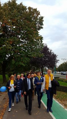 Aceste informații utile și multe altele au stat la baza unei acțiuni plănuite împreună cu doamnele liberale, la care au aderat și tinerii și studenții liberali din Timișoara, de Ziua mondială a mersului pe jos, 15 octombrie. Împreună cu primarul Timișoarei, Nicolae Robu, un grup format din câteva zeci de persoane a parcurs traseul din Piața Unirii, spre Universitatea de Vest, str. Cluj, până la Stadionul “Dan Păltinișanu”, unde a avut loc un important meci de rugby al echipei timișorene.