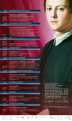Asociația Musica Antica și Filarmonica Banatul vă invită – în intervalul 12 septembrie – 7 octombrie – la o serie de 9 concerte-eveniment, în cadrul celei de a XI-a ediții a Festivalului de Muzică Veche. Concertele se vor desfășura în Biserica Evanghelică Lutherană (de la Punctele Cardinale), cu începere de la ora 20.00.