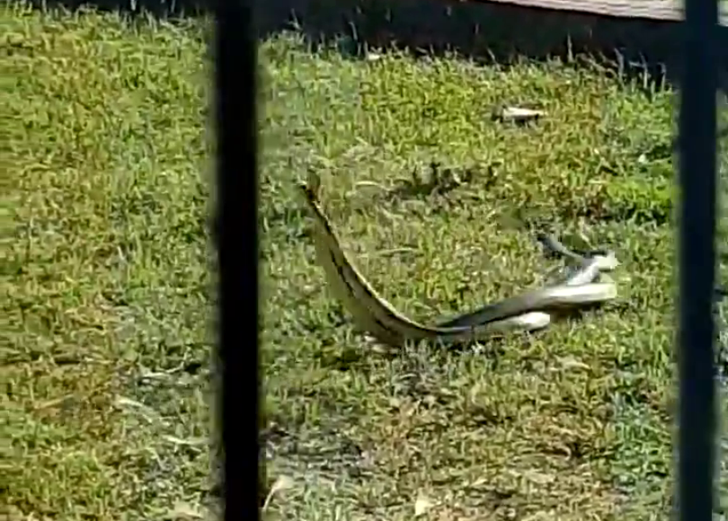 Reptila a fost capturată de pe scările de acces şi a fost transportată în afara oraşului, într-o zonă împădurită.