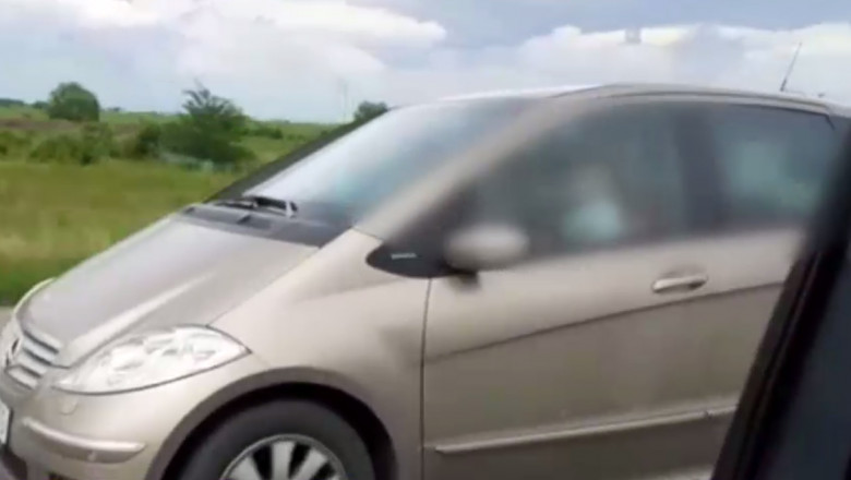 Un șofer a fost filmat, pe autostradă, în timp ce conducea și făcea depășiri cu un copil în brațe. Pe bancheta din spate a mașinii se afla un alt copil, care nu era prins într-un scaun special sau cu centura de siguranță. Iar șoferul a părut foarte deranjat în momentul în care conducătorul auto care a făcut filmarea i-a atras atenția.