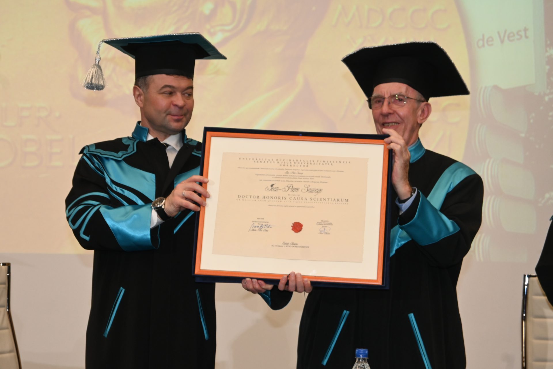 Comunitatea academică a Universității de Vest din Timișoara i-a conferit profesorului Jean-Pierre Sauvage, laureat al Premiului Nobel pentru Chimie în 2016, titlul de Doctor Honoris Causa Scientiarum.