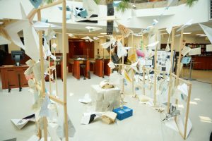 Un moment aparte al evenimentului a fost prezentarea instalației artistice „Zborul Cunoașterii”, realizată de studenții din anul I ai Facultății de Arhitectură și Urbanism din Timișoara, specializarea Mobilier și Amenajări Interioare, sub coordonarea conf. dr. arh. Andreea Anghel și conf. dr. arh. Cristina Povian. Pornind de la un proces de brainstorming, studenții au imaginat o instalație care combină pagini de carte și avioane din hârtie realizate din foste planșe ale studenților-arhitecți – simboluri ale efortului, creativității și parcursului educațional. În centrul compoziției se află omul și cartea deschisă, mesajul transmis fiind acela că dezvoltarea personală și profesională se construiește prin cunoaștere.