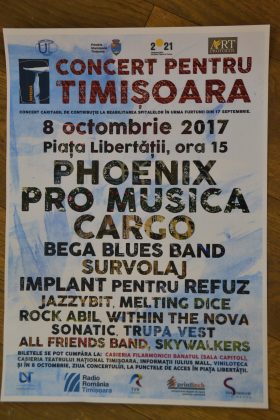 Nicu Covaci face un îndemn către timișoreni să fie solidari și să vină în număr mare. Trebuie ajutat orașul în care s-au născut mulți dintre noi. Cei ce nu s-au născut aici ar trebui să se adapteze și să nu strice ce au găsit. Și Adrian Bărar se arată onorat de invitație și crede că locul muzicienilor este pe scenă, deci cu atât mai mult este de apreciat rolul celor ce s-au implicat în organizare.